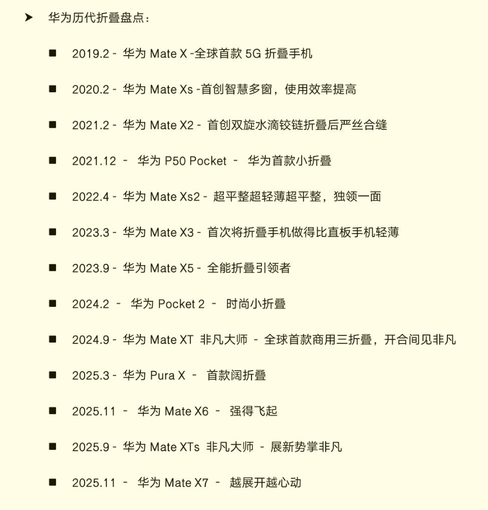 先抛出一个结论:国产手机在折叠屏手机赛道,在全球范围是绝对领先的地位。而其中,尤其以华为折叠屏,领先中的领先。11月25日,华为Mate X7正式发布,这是一款全新折叠旗舰。影像方面,搭载第二代红枫原色摄像头,折叠机最强感光主摄和长焦。搭载鸿蒙大屏AI智能体,让大折叠的广阔屏幕,真正承载起更智能、更便捷的全场景生活。华为7年发布多款折叠屏手机,在该赛道处于绝对的统治地位。而反观另一个手机巨头——苹果。苹果做折叠屏手机的传闻已经传很多年了,为什么一直没有推出来呢?大概率是有很多还没克服的困难。国产的折叠屏都是苹果折叠屏手机的老师。从折叠屏手机这个赛道,一叶知秋,可以看出来苹果手机正在跌落神坛,说明苹果的创新力在下滑。在过去 20 年,苹果发布了多款改变行业格局的产品:2001 年的 iPod、2007 年的 iPhone、2010 年的 iPad 和 2015 年的 Apple Watch。虽然苹果市场地位还挺强,利润也挺高,但是创新能力却急剧下滑,在5G手机、屏下摄像头、折叠屏手机等赛道完全落后于国产手机。