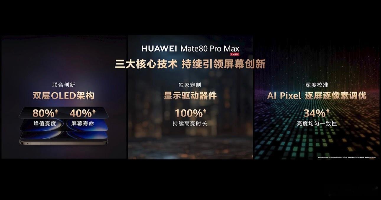 华为Mate80ProMax搭载双层oled屏幕,峰值亮度达到了惊人的800
