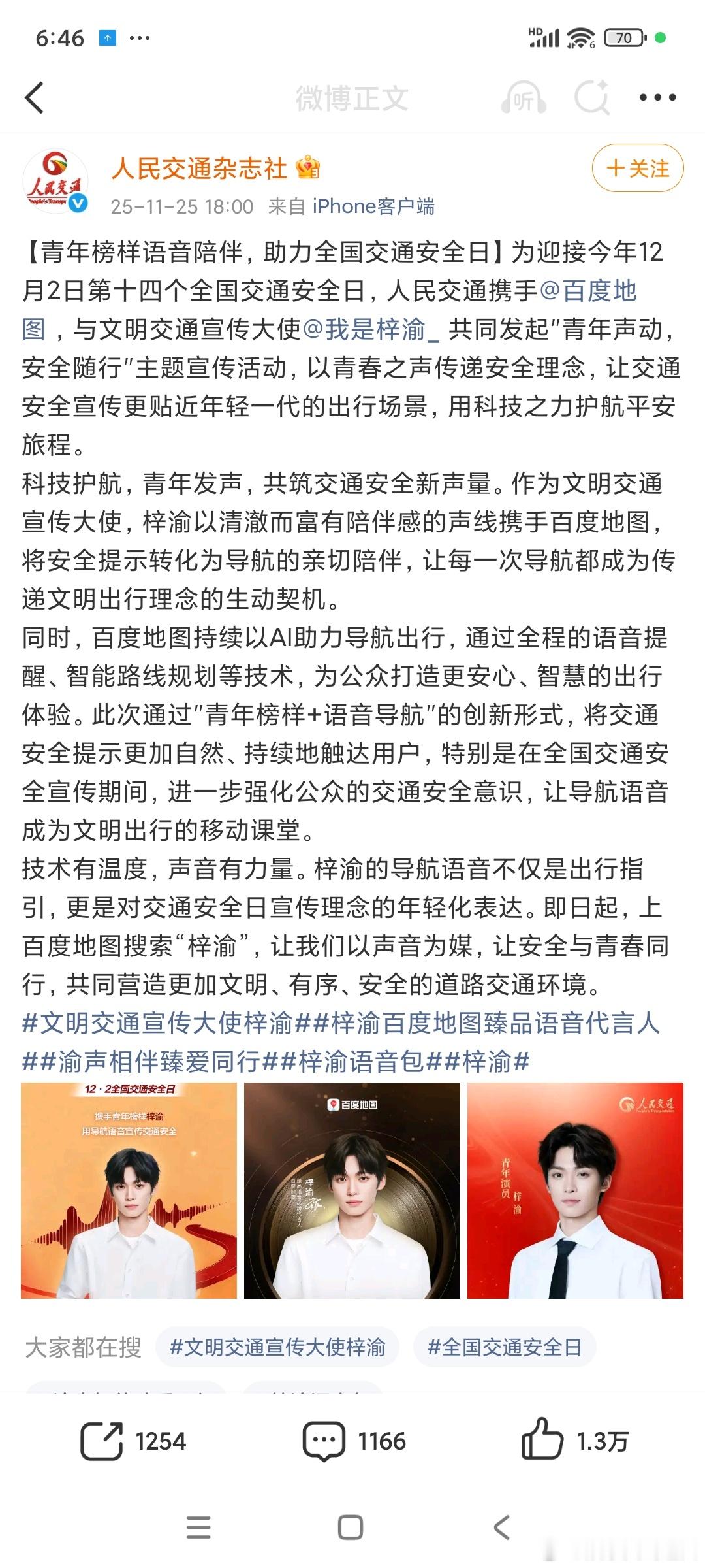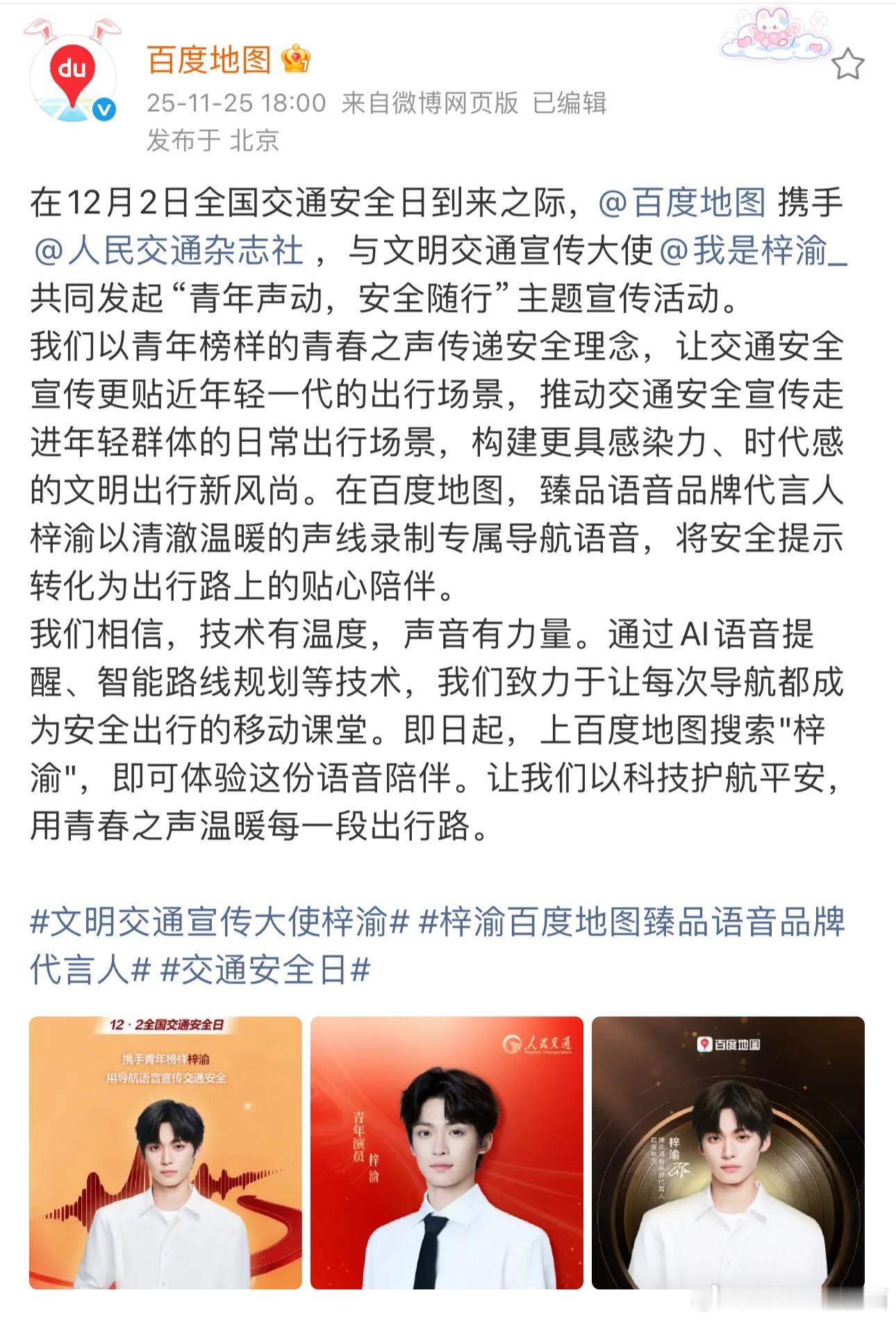 这是多久前就联动上了!聚焦122全国交通安全日✨ 携手 和宣传大使 ,以“青年声动,安全随行”传递文明交通力量~ 就是这个又红又专的梓渝,和粉丝一起传递榜样力量!