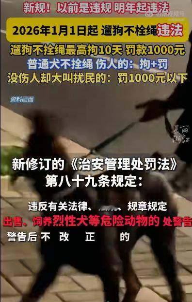 关于养狗的新规定成了大家热议的话题从明年起,遛狗不拴绳可能要面临最高十天的拘留和一千元的罚款。这个消息一出,养狗的和不养狗的人都炸开了锅,有人拍手叫好,也有人觉得“管得太严”。其实,这背后藏着的是城市治理的升级和公共安全的考量。 先说说这个新规到底怎么回事。这次修订的《治安管理处罚法》里专门给养宠物划了“红线”,其中最受关注的就是遛狗不拴绳的问题。根据新规定,如果遛狗时没牵绳,导致狗伤到别人,轻则罚款一千元,情节严重的,比如狗把人咬得比较严重,或者多次不拴绳,那主人可能得被拘留五到十天。更严格的是,如果养的是烈性犬,比如藏獒、比特犬这类攻击性强的狗,不仅没拴绳伤人要罚,连养这种狗本身也可能被警告、罚款甚至拘留。 为什么突然要出这么严的规定?其实,这背后是城市里养狗矛盾的集中爆发。现在养狗的人越来越多,但遛狗不拴绳、狗随地大小便、狗乱叫扰民这些事,早就成了社区里的“老大难”。比如,有的老人散步时被没拴绳的狗扑倒,小孩在小区里玩被狗追着跑,甚至有人被狗咬伤后,主人还理直气壮地说“我家狗不咬人”。这些事虽然看起来不大,但关系到每个人的安全感。尤其是老人、小孩和怕狗的人,看到没拴绳的狗,心里多少都会发怵。新规的出台,其实是在用法律手段给这些矛盾“踩刹车”。 不过,新规的严格性也引发了不少讨论。有人觉得“罚得好”,毕竟狗伤人的新闻太多了,只有严惩才能让主人长记性;但也有人担心“一刀切”会不会太狠,比如有的狗性格温顺,主人平时也很注意,偶尔没拴绳是不是就要被罚?其实,新规里提到的“情节较重”是有具体标准的,比如狗伤人的程度、主人是否多次违规、是否在儿童活动区域等重点场所没拴绳,这些都会影响处罚的轻重。法律不是为了罚而罚,而是想通过明确的规则,让大家知道“什么能做,什么不能做”。 更值得关注的是,这次新规的出台,标志着养犬管理从“劝导为主”转向了“违法必究”。以前,社区、物业只能劝主人拴绳,最多贴个告示,效果有限;现在,法律直接把遛狗不拴绳定义为违法行为,执法部门有了更硬的依据,主人也会更重视。这种转变,其实是在推动一种更可持续的治理机制政府提供制度和技术支持,社区搭建协商平台,物业落实日常管理,养狗的人承担主体责任,不养狗的人也有表达和监督的权利。当规则不再是自上而下的命令,而是大家共同协商的结果,执行的成本才会降低,文明的习惯才能真正养成。 说到底,遛狗拴绳不该是一场“猫捉老鼠”的游戏,而是一见我们如何在这个越来越拥挤的城市里共同生活。法律是底线,但真正的文明,是每个人都能主动牵起那根绳子不是因为怕被查,而是因为知道这是对他人、对城市、对宠物本身最基本的尊重。 来源:海报新闻