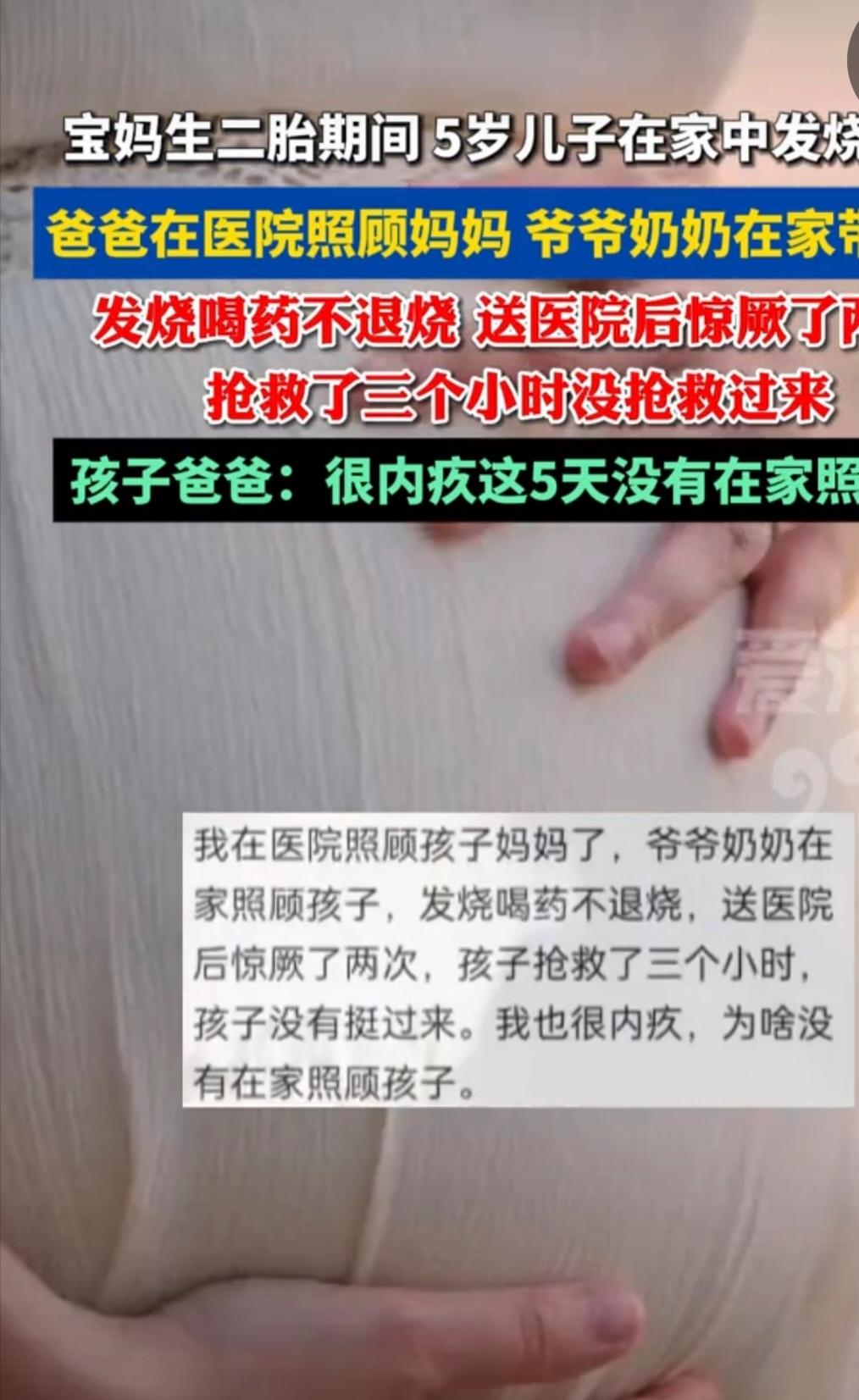 妈妈生二胎期间5岁儿子在家发烧离世 这个消息像一记重锤,击碎了无数人的心,也让我