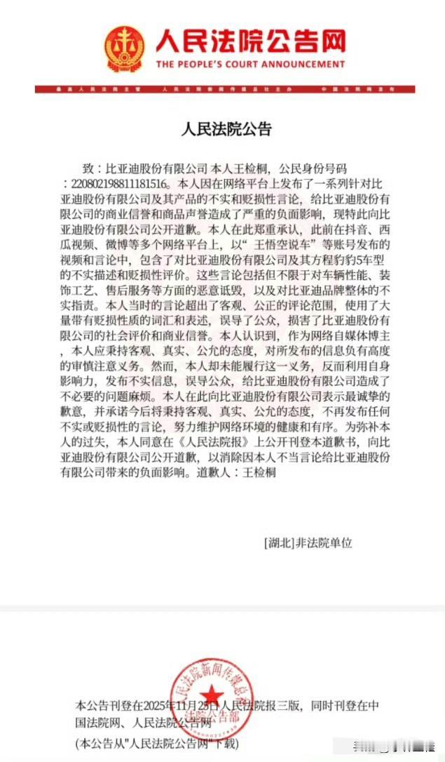 当初有多嘴硬,道歉就有多诚实,作为曾经5C天团的头部博主,王悟空认怂了、也道歉了,并且道歉内容同时刊登在人民法院报、中国法院网以及人民法院公告网! 接下来,我想看看徐里里跟姚十八,他们会不会一直“嘴硬”下去?[呲牙]