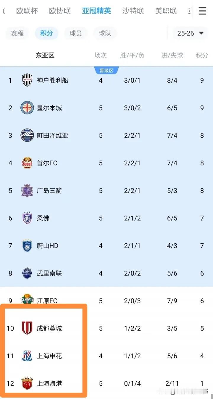 中超三大豪强上海海港、成都蓉城和上海申花真是丢人现眼!在本赛季的亚冠精英赛东亚区中,目前中超冠军上海海港在五轮过后仅仅积1分排名倒数第一,而成都蓉城五轮过后积5分排名倒数第三,上海申花在四轮过后积4分排名倒数第二。在中超联赛中争得你死我活的三大豪强竟然在亚冠精英赛中成为了难兄难弟,这三支球队可是代表了中超的最高水平,但是他们却在亚冠赛场上丢尽了人。
