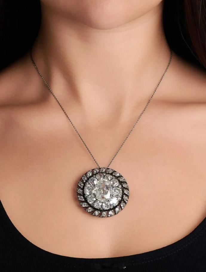 不出大家所料,前些天确定曾属于一代巨佬拿破仑的圆形钻石胸针以最高估价17倍以上的价格成交:352.7万瑞郎(约合接近3100w毛爷爷) 这胸针原本是帽饰,在著名的滑铁卢战役中被落在了马车上,并作为战利品上缴给普鲁士国王腓特烈·威廉三世 后续传播路线不明,默默在老霍家放了200年。苏富比都有真人模特拍照,看图4大小也很可观诶 图1同框那颗绿柱石据说也属于拿破仑,但没有完整的故事线佐证,即便如此也翻十几倍卖了83.82万瑞郎 苏富比估计笑得嘴都要裂了,拿破仑ip在珠宝拍卖会的功力真的太稳了
