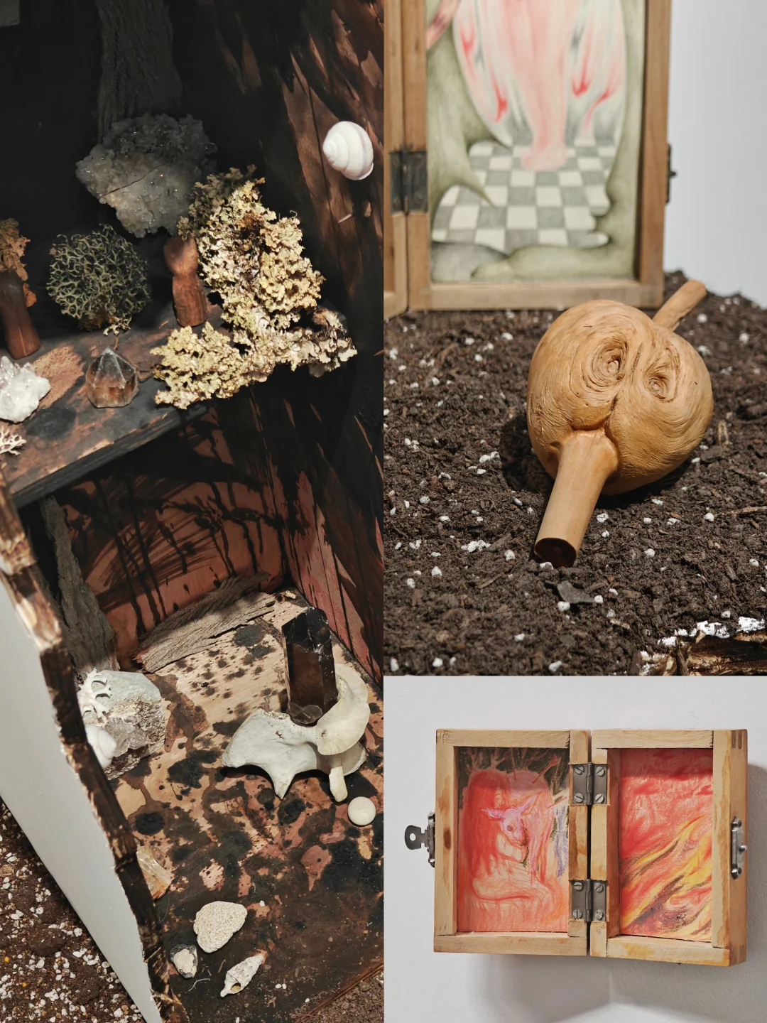 🖼艺术家通过自然材料与生命痕迹的对话,呈现“生长与伤痕共存”的生命循环,探讨毁灭与新生、创伤与绽放的交织关系。