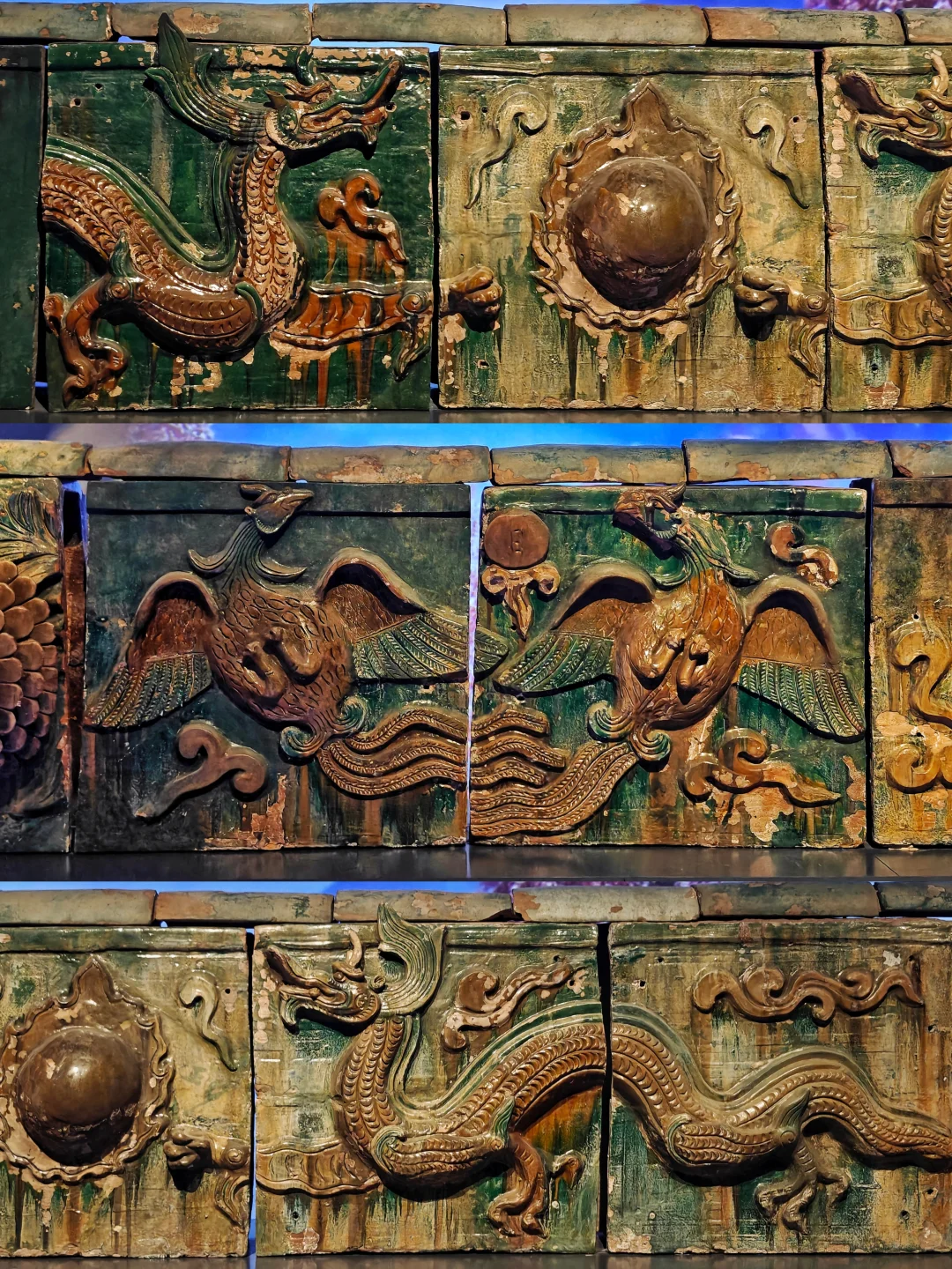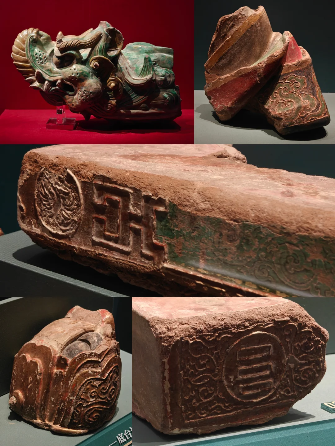 🔸造型与釉色特殊的琉璃构件,三清殿、纯阳殿内建筑彩画图案、沥粉贴金残件等,让观众了解声名大噪的壁画之外,永乐宫建筑中还有许多精彩看点