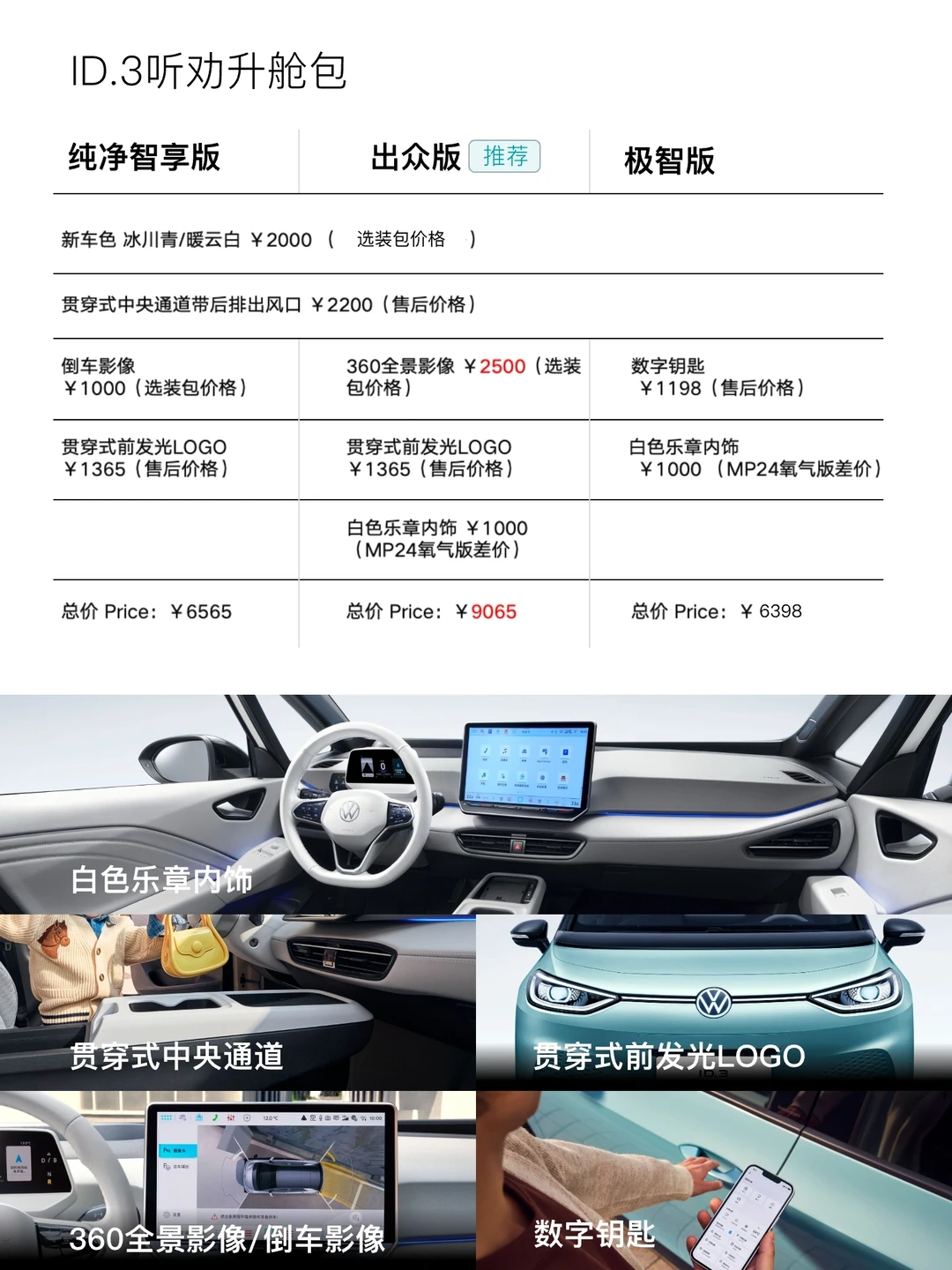 之前在观望ID.3的朋友们注意了!千万别错过刚上市的新款大众ID.3,性价比拉满!价值6000元起升舱礼全系免费送!这可是没有套路真实计算出来的数字,升舱礼中的每一项配置之前都是明码标价的选装,现在是实打实的福利
