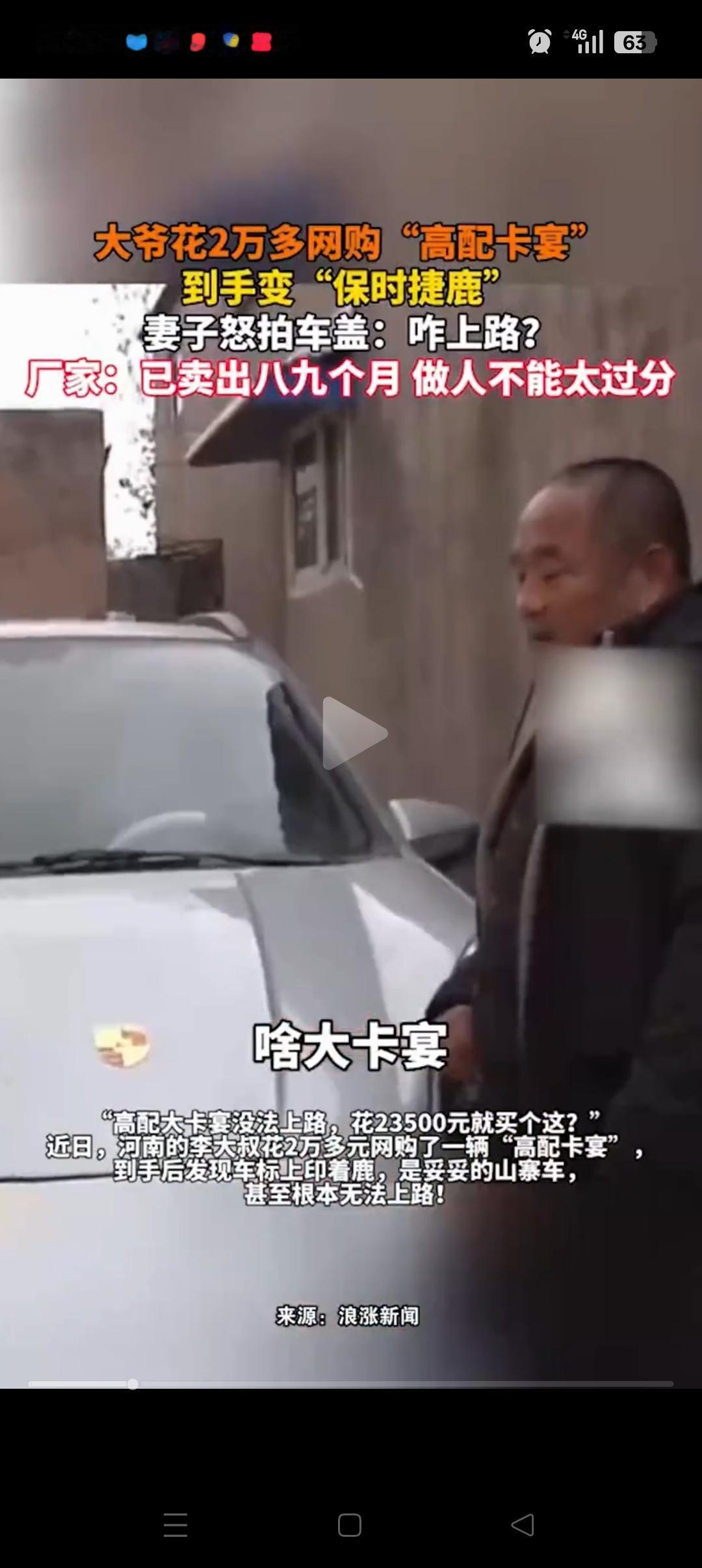 “贪小便宜吃大亏”,河南,李大爷花23500块买了一台保时捷卡宴,开了8个月后懵了,妻子发现这是“保时捷鹿”,完全跟保时捷不是一回事。 李大爷说:厂家卖出来的时候,说可以上路。但现在车子不能上路,所以想退了。 厂家也有自己的说法,说这是老年代步车,能不能上路要看当地的情况。况且这位大爷已经开了7,8个月了,明显不合理。要退的话,必须折旧 最后,在记者的帮忙下,厂家给全额退款了。 但是李大爷也并不是没有错,因为这台车子他明显一直在使用,要不然也不会8个月才想起来退款,有点不厚道。 希望大爷,大妈以后买东西不要光图便宜了,要不然还会上当的[捂脸][捂脸]