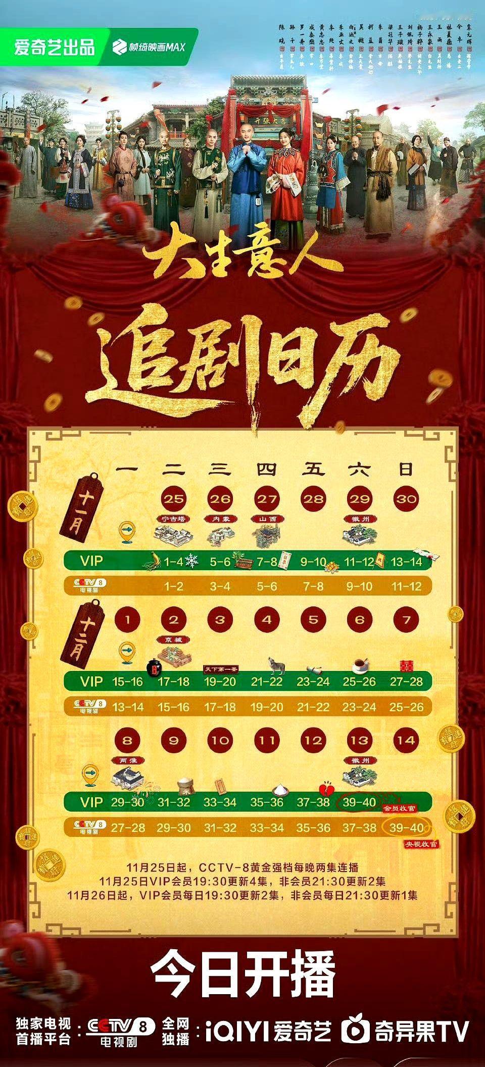 陈晓孙千这部商战剧,要爆的节奏? 今天开播,剧名叫《大生意人》。爱奇艺VIP直接看4集,央视CCTV8播2集,后面每天都更2集,这个节奏还行。 演员阵容是真顶。陈晓演个商界奇才,孙千也从甜妹转型职场精英,看点足足的。还有黄志忠、朱亚文这些老戏骨加盟,商战戏绝对稳了,那味儿。 故事是讲清末民初一个底层小人物怎么奋斗成商业大佬的,改编自小说。导演是拍《大江大河》的那个,服化道肯定没得说,质感有保证。 现在网上都在聊陈晓和孙千的CP感,就看剧里火花怎么样。业内都说这剧可能是年度标杆,直接对标《大宅门》了,期待值拉满。 剧已经开播,阵容和制作都摆在这儿,追不追自己看吧。