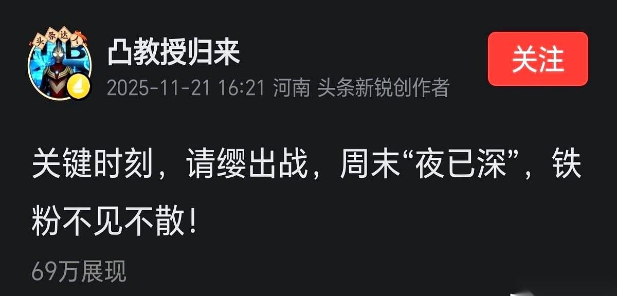 说好4025点以下就金盆洗手的,结果呢? 十天。 就十天。 哥们儿自己就把自己给“放”出来了。 我当时就笑了。真的,不是气,就是觉得好笑。 你信誓旦旦的样子,我还以为是什么江湖大侠,一言九鼎,说退隐就退隐。结果呢,原来是戒网瘾没成功的初中生。 这哪是炒股啊,这分明就是一种戒不掉的瘾。 不是对赚钱的瘾,是对当“神”的瘾,是对被人前呼后拥、一句话搅动几万人心情的瘾。 你想想,一个死空头,言多必失,直接被平台永封了,那是物理退场,身不由己。 他呢?一个死多头,自己给自己画了条线,本来想演一出悲情英雄,结果台下观众还没散干净,自己又屁颠屁颠跑回台上来了。 连自己说的狠话都兜不住,你还指望他兜住你的钱袋子? 别逗了。 这事儿其实跟股市没多大关系。 这就是人性。 嘴上的誓言,风一吹就散了。真正绑住一个人的,是他骨子里的欲望。 所以啊,别去取关,也别去骂。留着,就当个乐子看。 也是个提醒。 提醒我们,真正要戒掉的,不是哪个“大V”,而是我们自己心里头,那个总想靠别人、走捷径的念想。