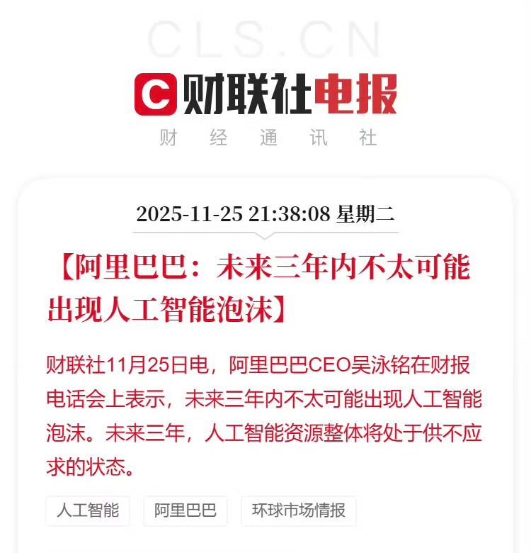 AI到底有没有泡沫?大佬们吵翻了!阿里CEO吴泳铭刚说“未来三年AI不太可能有泡