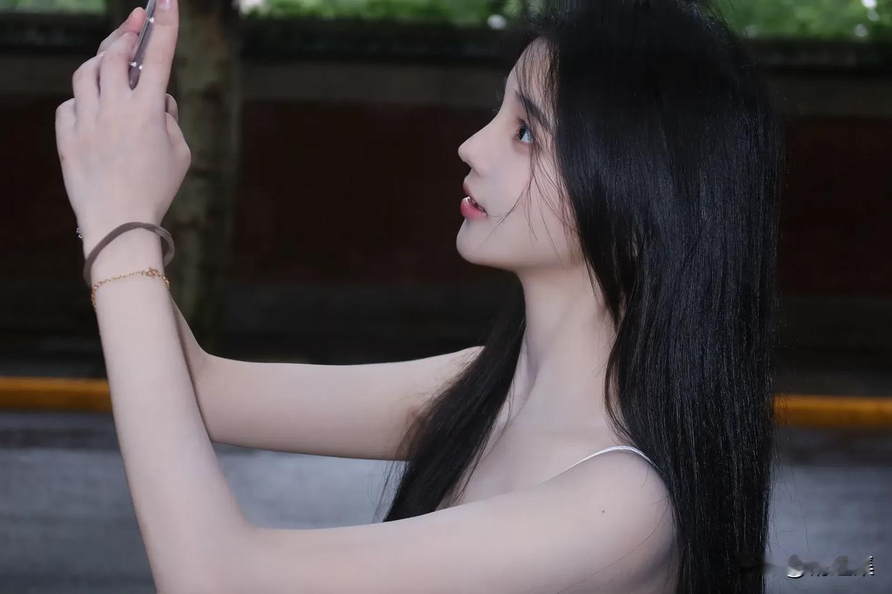 优雅自拍,黑发红唇,气质迷人