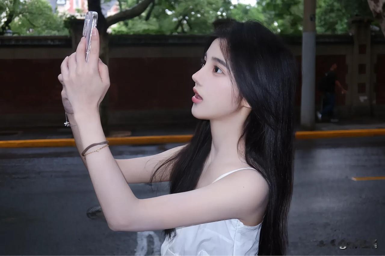 哇,江疏影这身造型真的美到窒息了!抹胸白裙简直是为她冷白皮量身定做的,配上那个