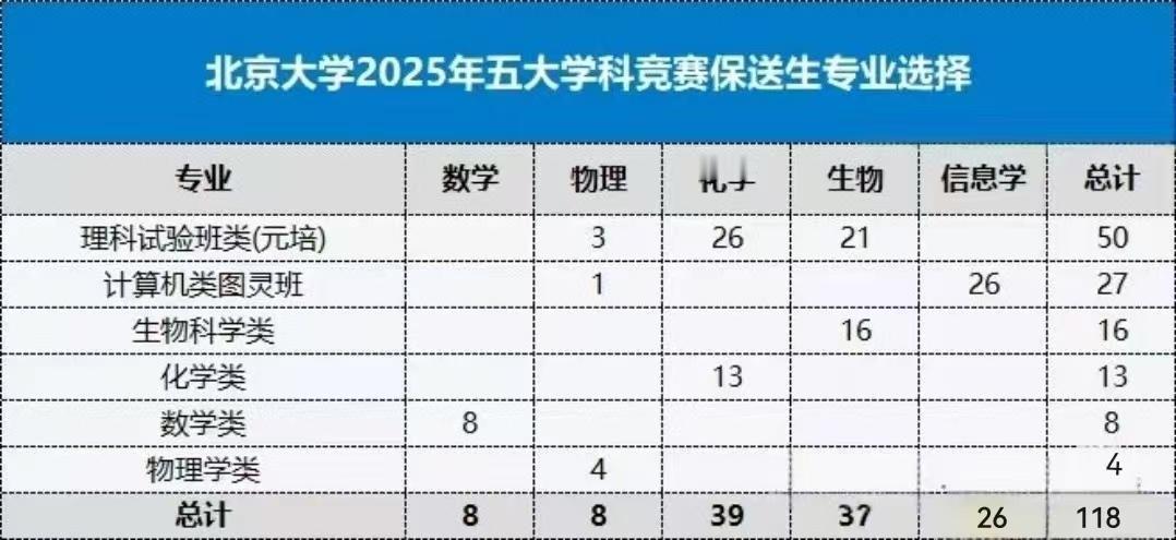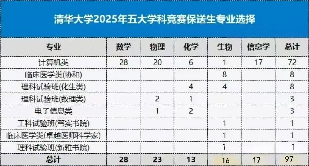 清北2025年五大学科竞赛保送生选择了哪些专业