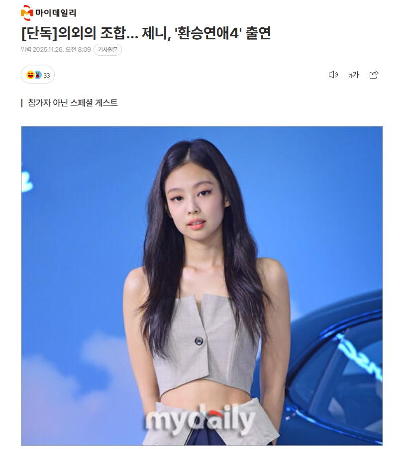 【Jennie将作为特别嘉宾出演《换乘恋爱4》】 Jennie将 以特别嘉宾身份参与《换乘恋爱4》录制。据韩媒26日报道,Jennie将出演恋综《换乘恋爱4》,目前即将进行录制。Jennie并非作为参与者出演,而是以特别嘉宾的身份参与节目,与现有嘉宾Simon D、李龙真、Yura、金叡园合作。本季的特别嘉宾还包括南润寿、BOYNEXTDOOR的明宰铉、成淏、SEVENTEEN的S.COUPS、珉奎、DAWN、Roy Kim、BTOB李旼赫等。这是Jennie久违地作为综艺节目嘉宾亮相,继今年初出演tvN《You Quiz On The Block》之后尚属首次。目前BLACKPINK正在进行世界巡回演唱会"DEADLINE",在12月整月的休息期间,Jennie将进行《换乘恋爱4》的录制。《换乘恋爱》是一档恋爱真人秀节目,讲述因各种原因分手的情侣们聚集在同一屋檐下,回顾过往恋情,面对新的缘分,寻找属于自己爱情的故事。该节目于2021年6月首季开播后引发热议,现已发展成为系列节目。第四季于上月1日开播,全季共22集,目前已完成过半播出。