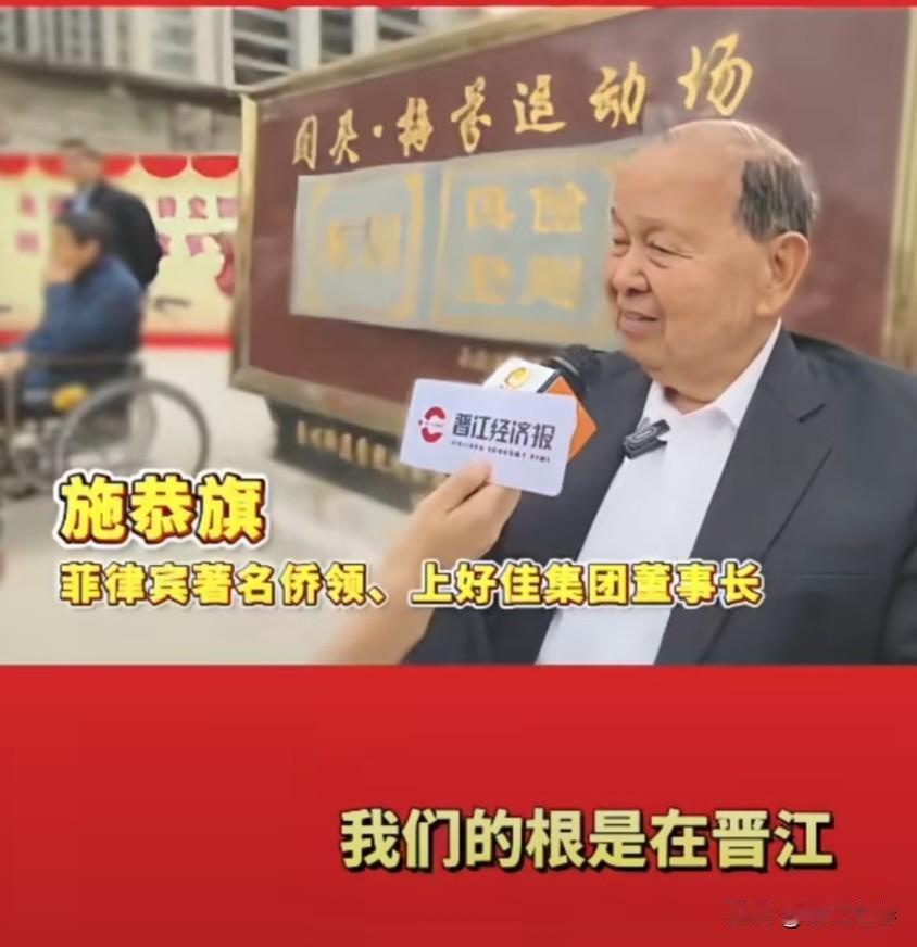爱国侨领、菲律宾上好佳集团创始人施恭旗日前回到家乡晋江龙湖镇前港村,在施阁头故事馆,给自己的父母施阁头和李梅芬两位老人的塑像揭幕。 施恭旗赤子之心,家国情怀,对祖国经济建设、家乡的慈善公益事业、教育事业做出巨大的贡献! 施恭旗被阿罗约、阿基诺三世、杜特尔特三任菲律宾总统任命为“菲律宾总统特使”,并授予总统勋章。 江西省对外协会顾问。 菲律宾宋庆龄基金会董事长。 中国侨商联合会荣誉会长。 2005年,施恭旗获得“上海市荣誉市民”称号。 2008年获中国民政部“中华慈善奖”,2023年荣获中国政府友谊奖。