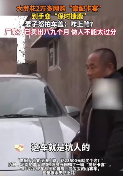 贪小便宜吃大亏!河南一大爷花23000元网购“高配卡宴”,结果到手之后,发现车标