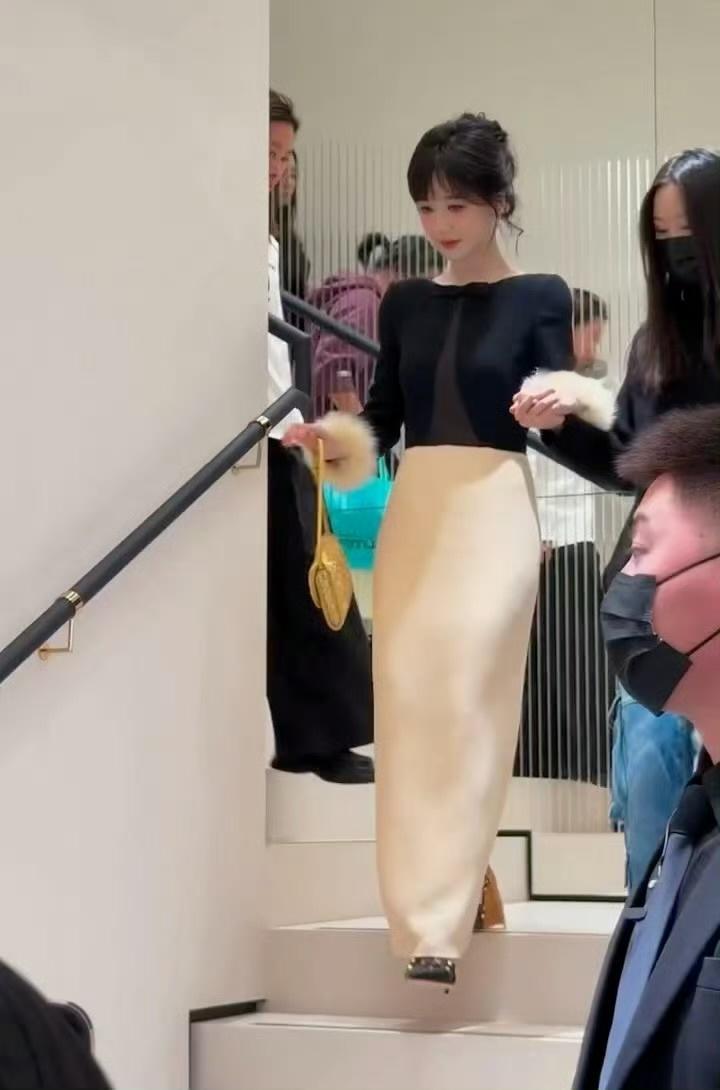 刘亦菲把死亡玫粉穿出了定制款的感觉,这种颜色普通人穿上分分钟黑三度,她居然能穿出