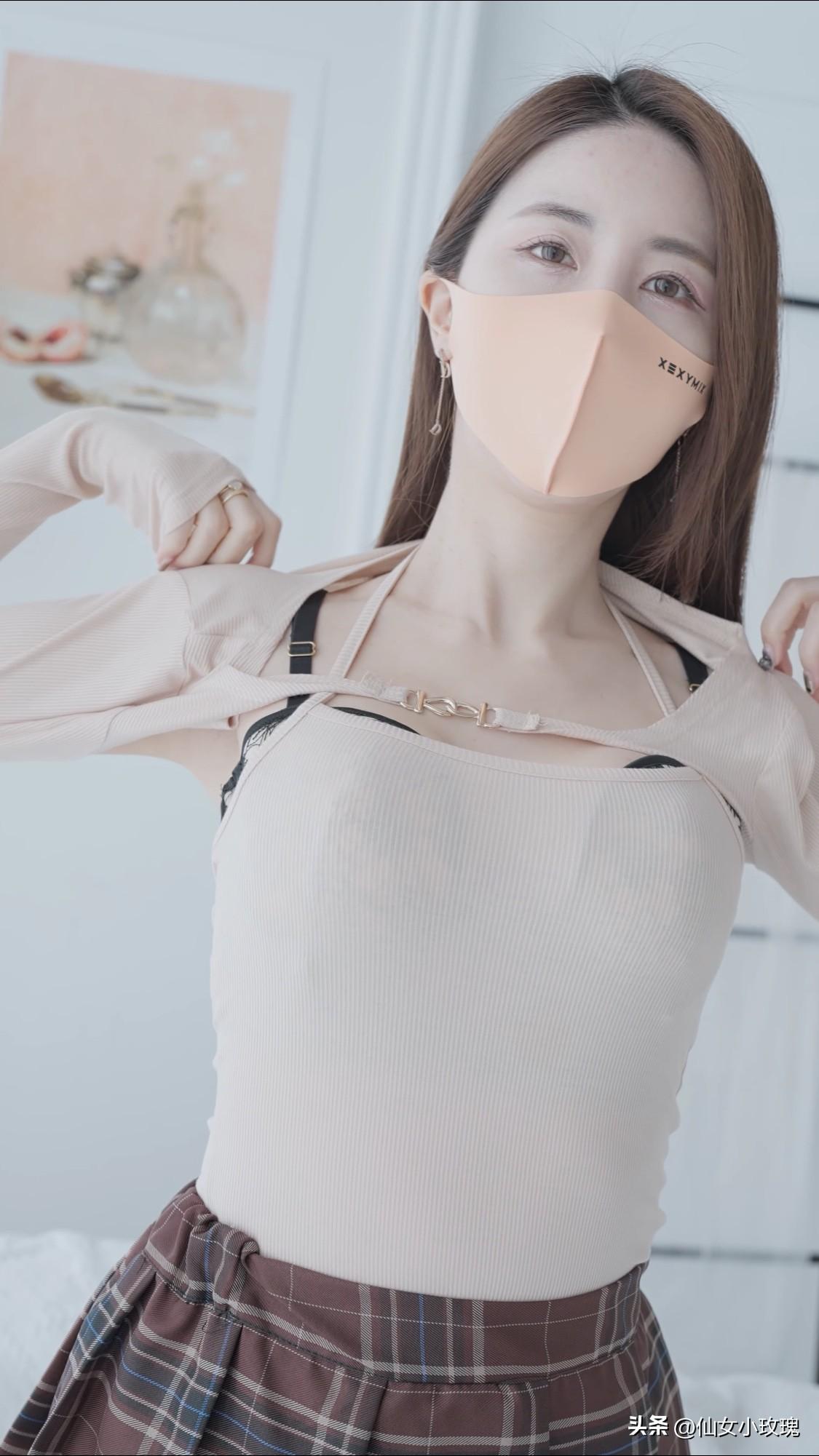 优雅黑纱装,粉色口罩下的神秘魅力