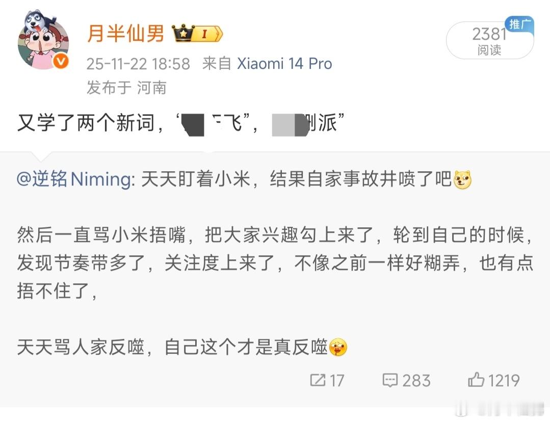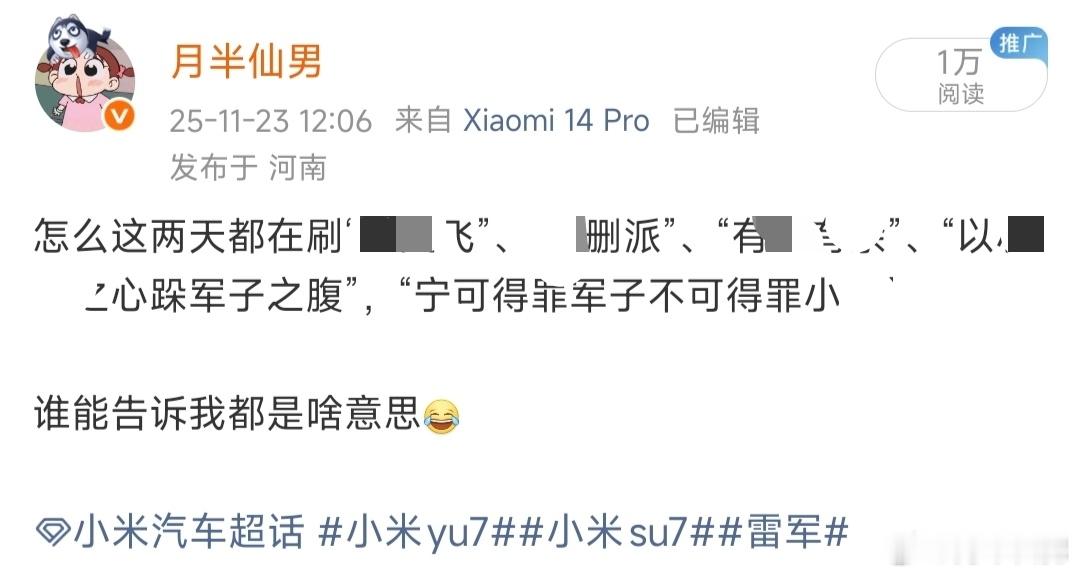 今天我发现两条微博被投诉了,我以为是事故相关的,没想到都是关于绰号类的,比如某正飞,某删派。我当时真的不知道说的是谁呀,为啥要投诉我。小米汽车小米yu7小米su7雷军