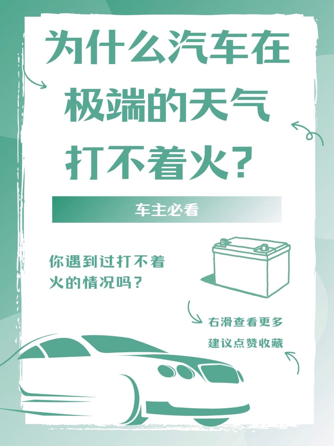 🚗低温天打不着火?蓄电池在作妖!❄️寒潮预警:低温会让蓄电池"犯懒"! 低温会降低蓄电池的化学活性,电池输出电流直接砍半!就像人在冬天手脚冰凉反应变慢,老旧电池更严重,启动车辆需要更大电流,电池一不够直接点不着火🔥高温天也别躲过责任! 高温天电池更容易"中暑"🌡️ 高温加速电池内部化学反应,电解液蒸发快,极板腐蚀更严重,电池寿命直接缩水!就像手机暴晒后自动关机,电池容量下降后启动困难,夏天也可能闷车!💡保命小贴士:✅定期检查电池状态✅低温天提前预热✅高温天避免暴晒✅旧电池及时更换我与汽车的日常大v聊车