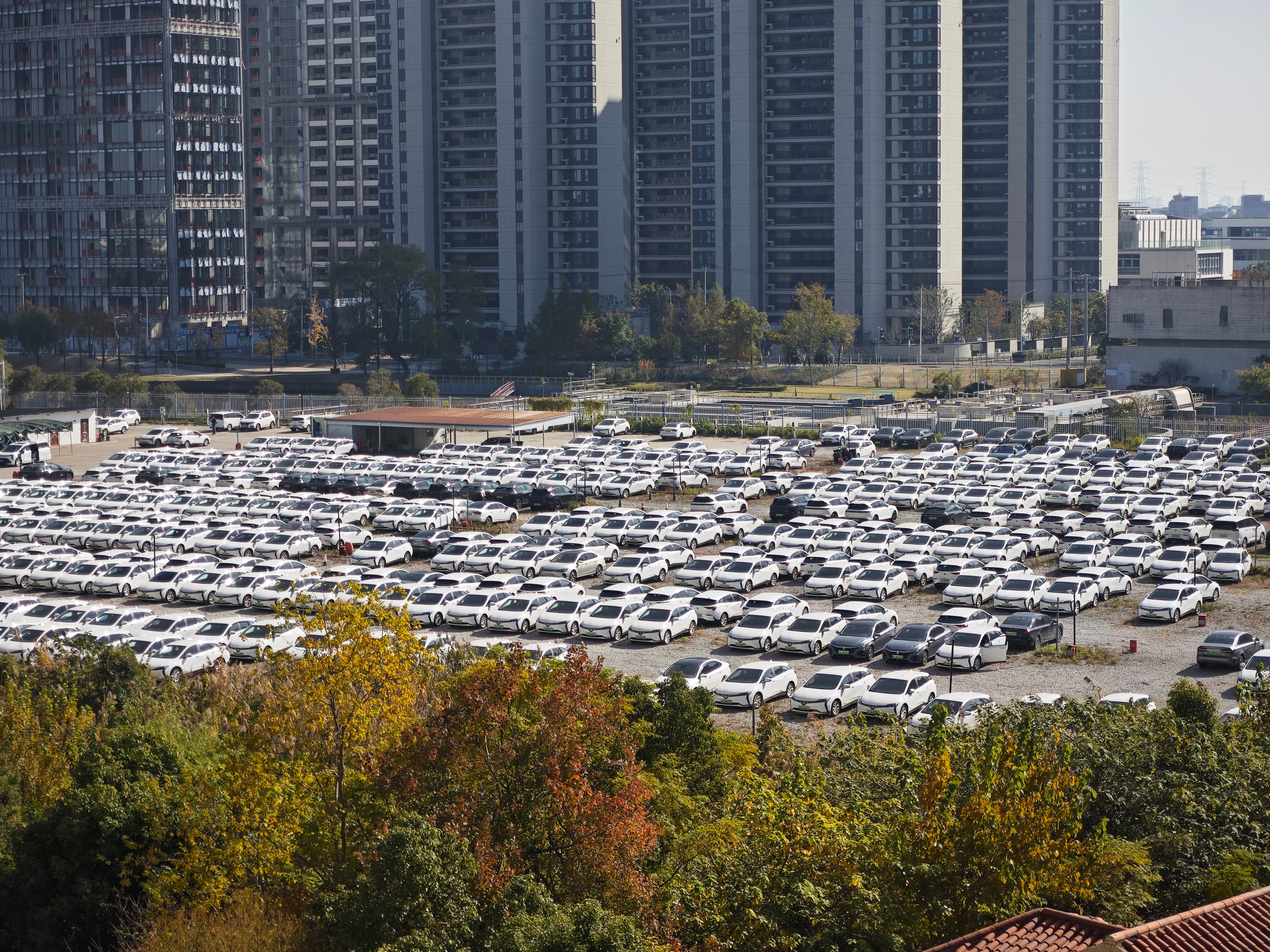 小区对面有个停车场,上海和江苏的边界。看着像是网约车。新能源大牛说上海 上海·安亭