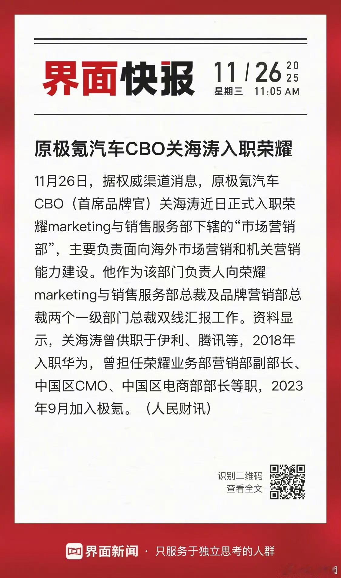 原极氪关海涛入职荣耀要是哪天赵明回来,那就比较炸裂了