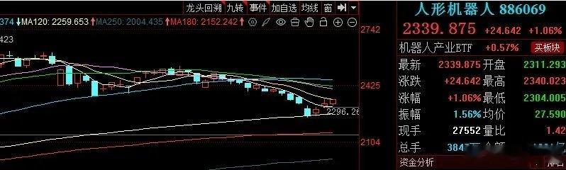 人形机器人上涨、短期或上涨动能不足!!!今天人形机器人表现还是非常强劲的,板块指数虽然上涨幅度不大,但板块内个股多只龙头股封死涨停甚至冲击大号涨停板。板块人气有较大提振。昨天给大家分析人形机器人中写到:“人形机器人上涨至10均线附近,而10均线对人形机器人指数有较大的压制作用,所以短期人形机器人继续上涨动能衰竭”,今天人形机器人上涨再次遇到10均线的压制,停止了上涨脚步,总体符合预期。从技术上来看,人形机器人今天上涨触碰到了10均线后停止上涨脚步,这个位置不仅有10均线的压制,还有前期大的箱体下轨的压制。虽然今天板块内有多只个股封死涨停,但板块指数涨幅涨幅,说明多方做多信心还是不足,所以人形机器人短期继续上涨难度比较大,做多力量不足。