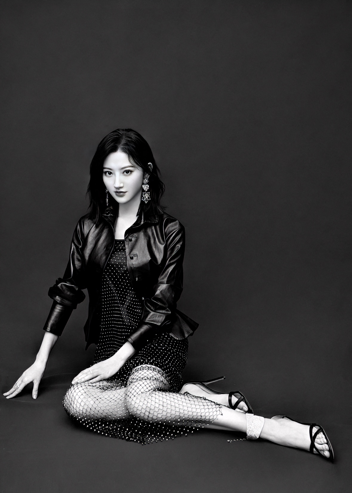 明星时尚 景甜主持活动,温柔甜美,黑色系穿搭景甜