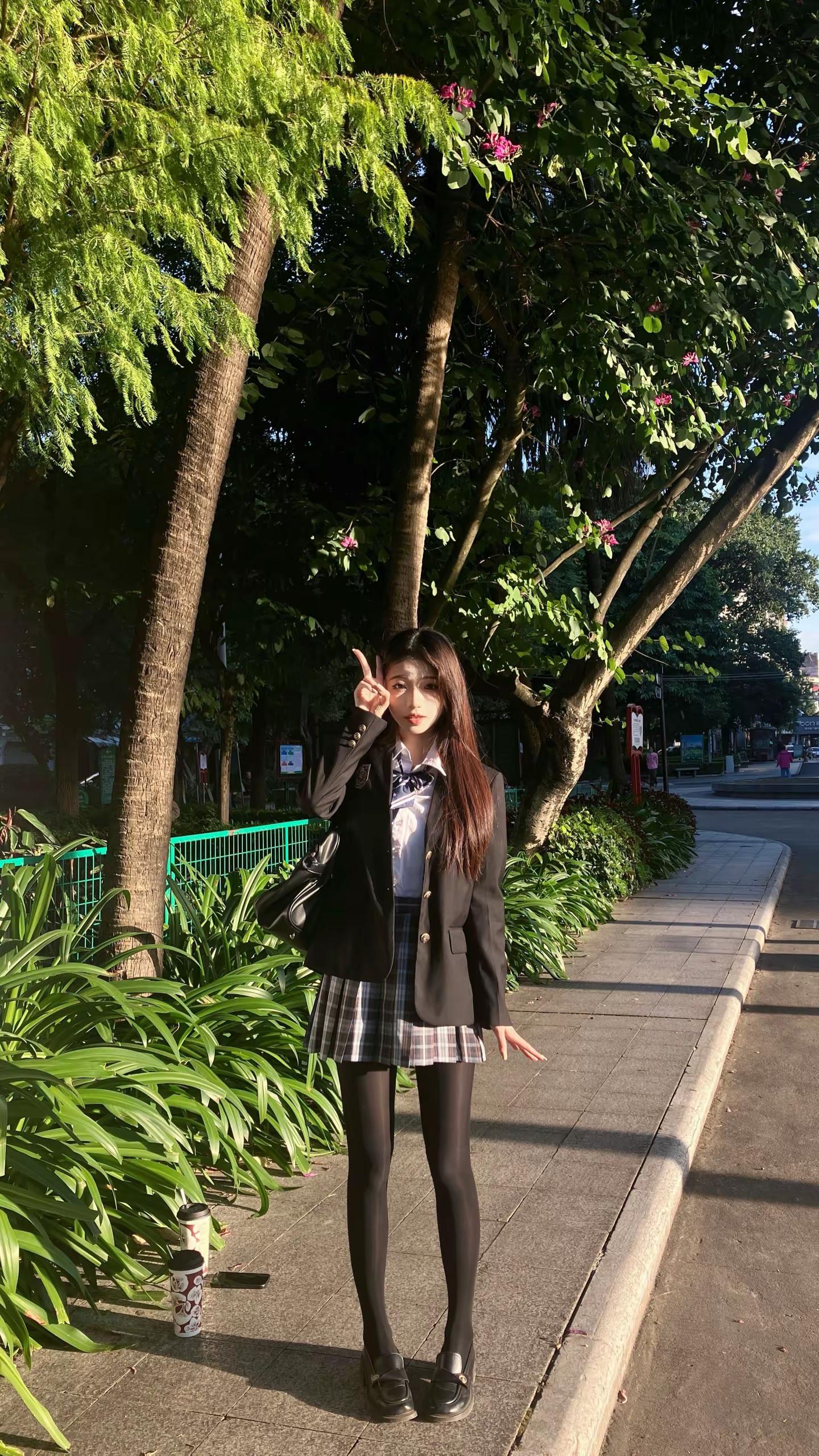 学姐也会有心事吗。jk 学姐公园 日系穿搭