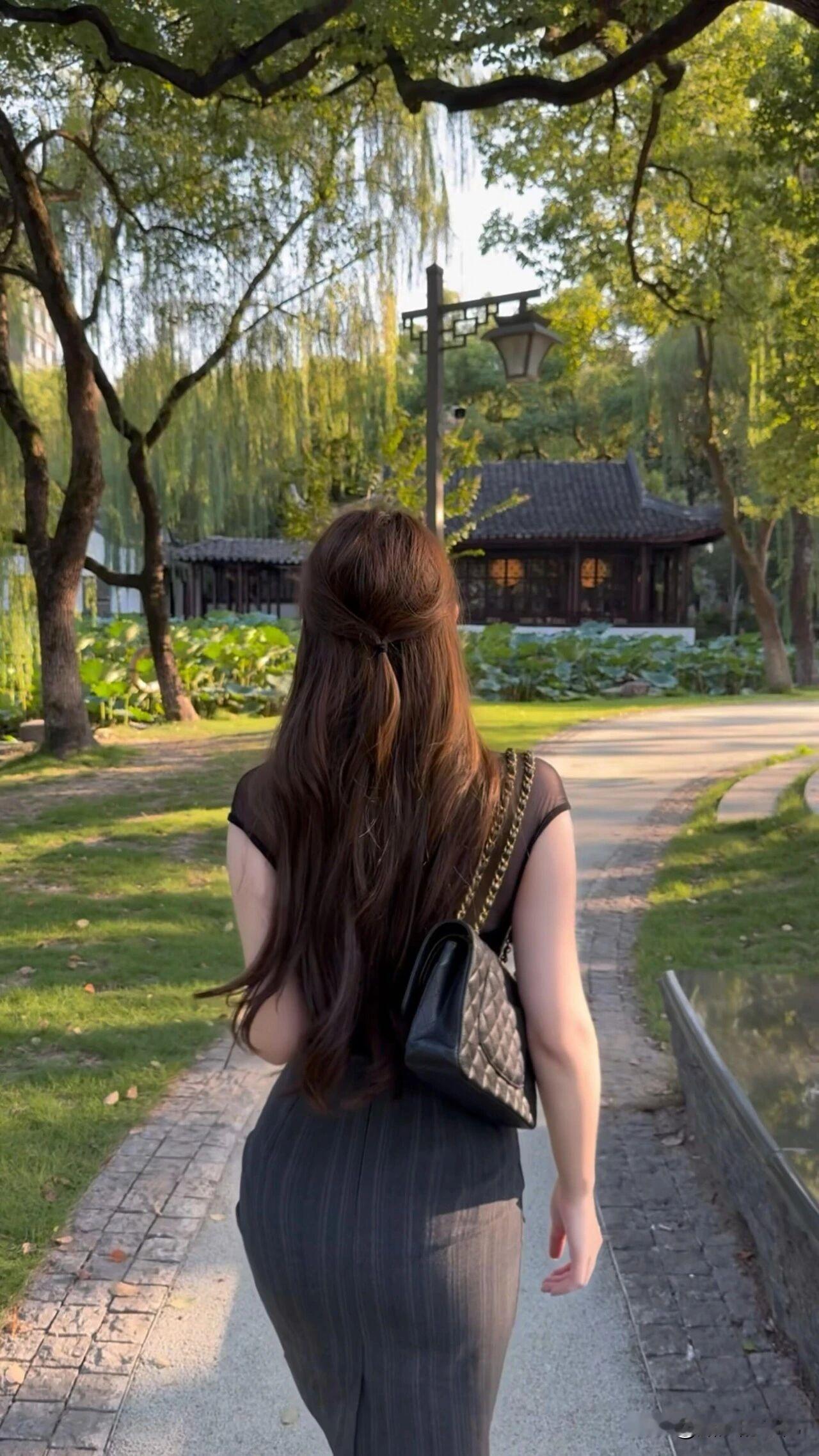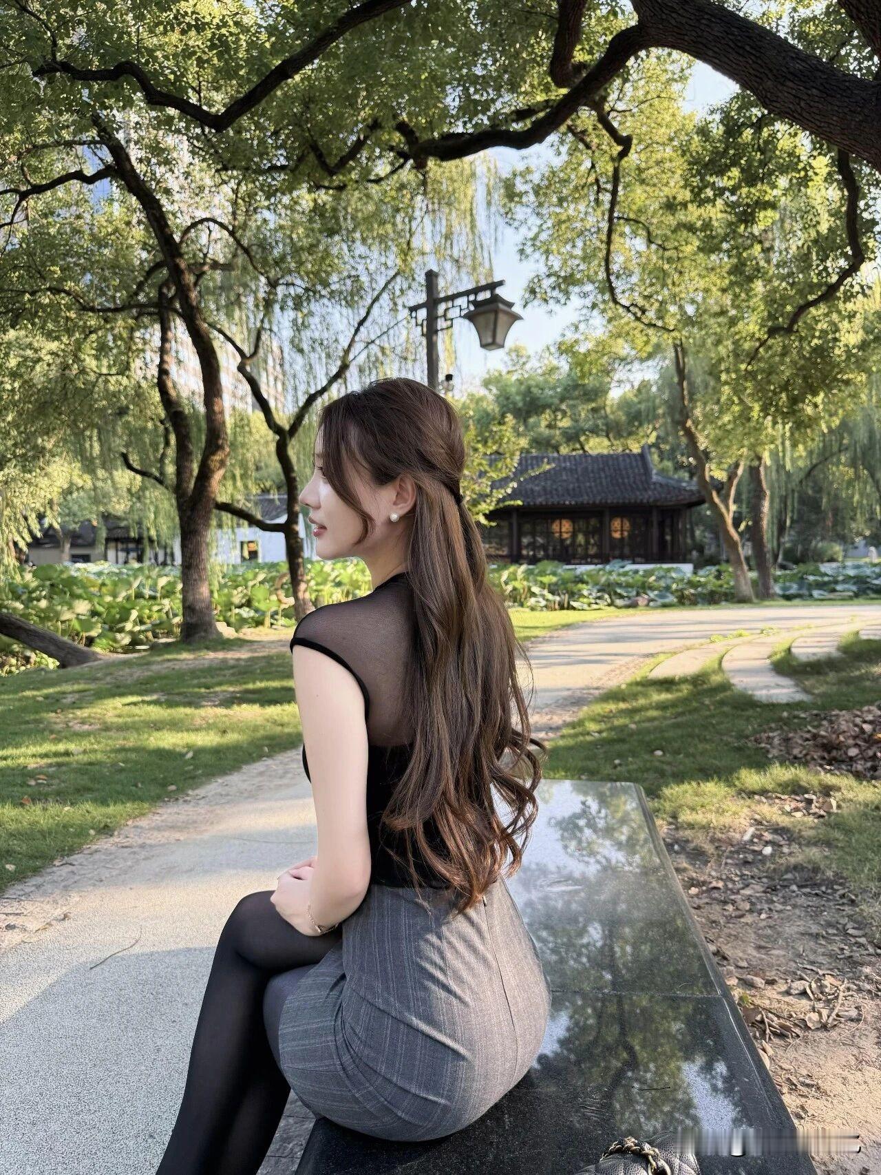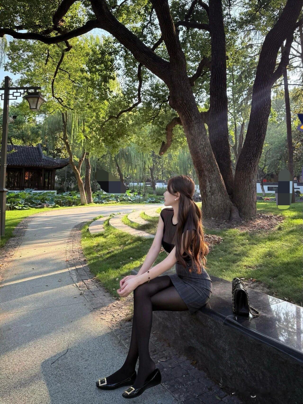 无需凹造型,她随性撑腿一坐,就成了公园里最松弛的风景[比心][比心][比心] 公园丽人合影 美女公园拍照 紫裙躺拍图