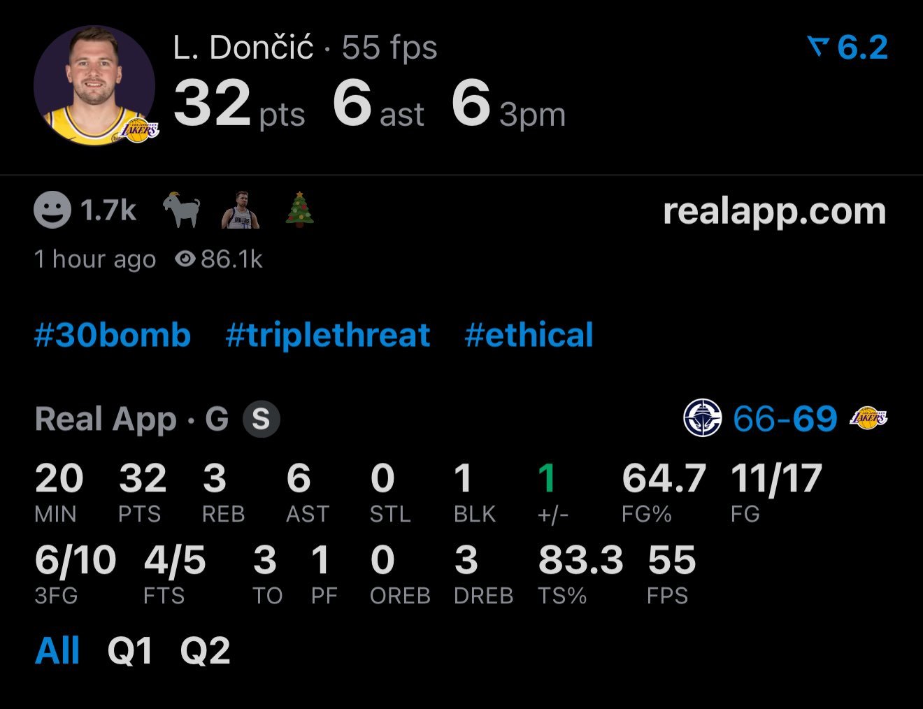 那天哈登半场35分,最终全场55分。今天东契奇半场32分,那么全场快船vs湖人NBA