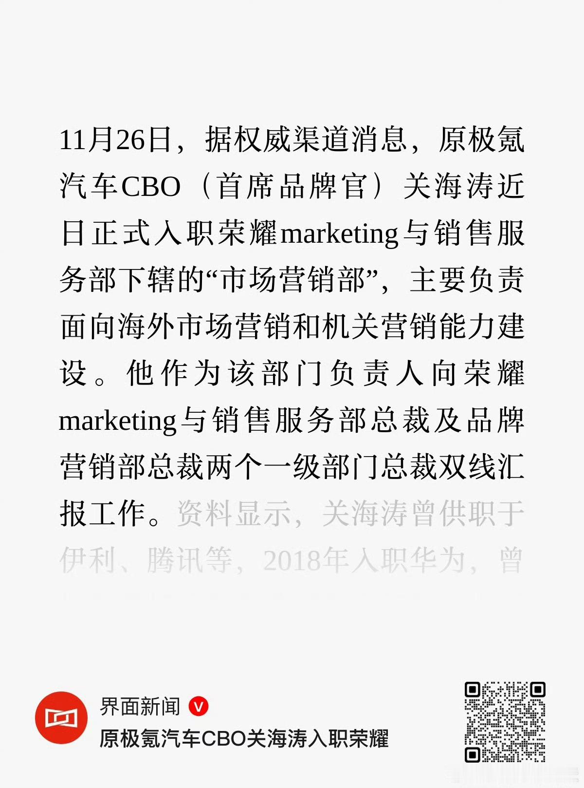 关海涛重回荣耀任职重回荣耀!认证还是汽车博主,是不是得抓紧改改