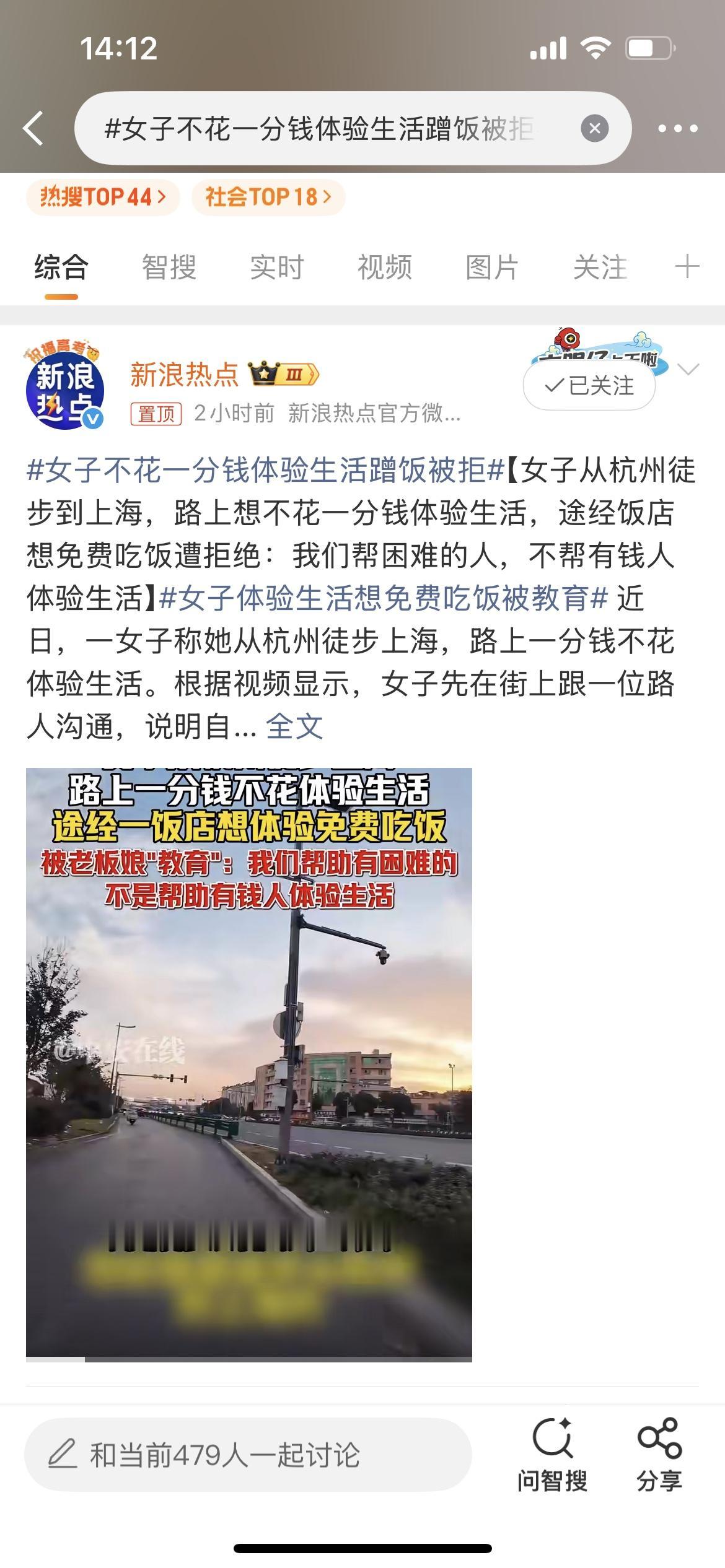 最近有个事儿在网上挺火的,一位女子说自己要从杭州徒步到上海,而且一路上不花一分钱,吃喝住都指望陌生人帮忙。结果在途中,她进了一家饭店想免费吃顿饭,直接被老板娘给拒绝了。老板娘说得特别直白:“我们帮助有困难的人,不是帮助有钱人体验生活。”这话一说出来,好多网友都拍手叫好。 其实在找饭店帮忙之前,这位女子也向一位路人求助过,直接就被回了句“不能”。从视频里看,她装备挺齐全,还拿着手机一直在拍,说是一种“体验课”,就是规定自己不能花钱。但老板娘显然不买账,她觉得你这明明是有能力负担的人,却要把这种“体验”建立在可能增加他人负担的基础上,这不太对味。 为什么这么多人支持老板娘呢?我想,主要是大家觉得,善意是宝贵的,应该留给真正需要帮助的人。像这位女子,她选择这种“零元徒步”,更像是一种个人挑战或者创作内容的方式,并非真的陷入困境。如果每个人都以“体验生活”的名义随意索取,那些真正需要帮助的声音,可能就会被淹没。老板娘那句“一顿饭钱都舍不得给”,点出了问题的关键:当帮助变成一种单方面的索取,而且是为了满足个人体验时,味道就变了。这也让人思考,在陌生人社会里,我们的善良是不是应该更有分寸感? 有人说,如果她真想体验生活,是不是可以用自己的劳动来换,比如帮店家洗洗碗、扫扫地,而不是直接伸手要。这样既体验了生活,也体现了对他人劳动的尊重。毕竟,谁的钱都不是大风刮来的,店家也要成本也要开销。纯粹的“免费”请求,就显得有些自我,甚至有点像网友说的“体验要饭”,这就偏离了体验生活的本意。 这个事儿之所以能引起这么大共鸣,是因为它触碰了我们心里关于“公平”和“尊重”的那根弦。在这个节奏飞快、人与人信任感不易建立的时代,每一次善意的付出都值得被珍视。我们可以选择善良,但也希望这份善良能被认真对待,而不是成为他人剧本里轻描淡写的一笔。 那么你对这种“零元徒步”怎么看?如果是你,你会愿意用劳动换取帮助,还是觉得直接求助也无妨?欢迎在评论区聊聊你的想法。