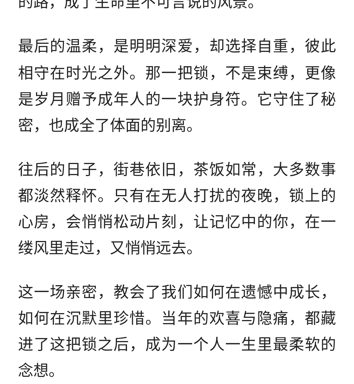 男女之间,有过一次亲密关系,这俩人心里就都给对方上了一把锁