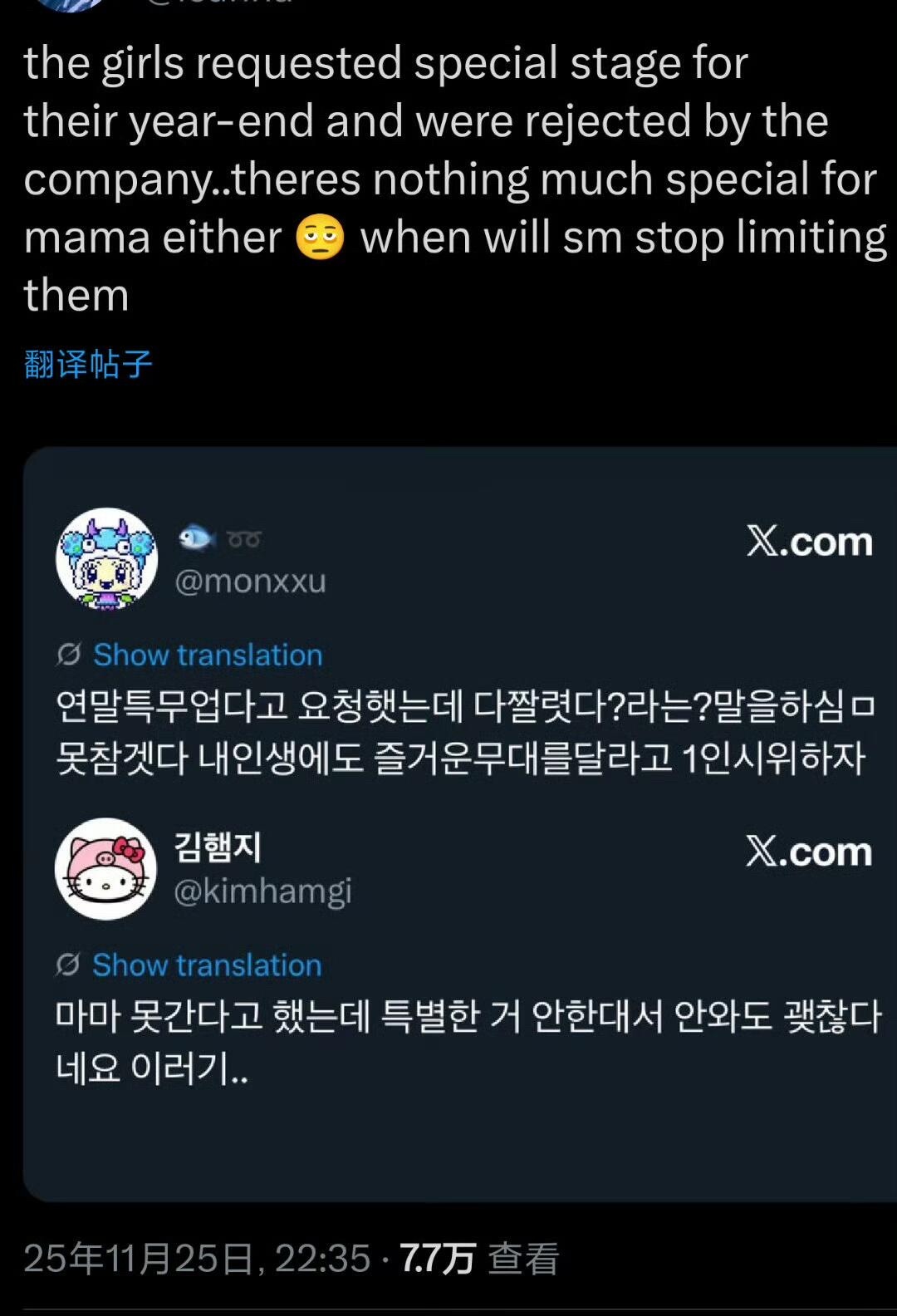 据传aespaMAMA舞台被公司拒绝特别舞台