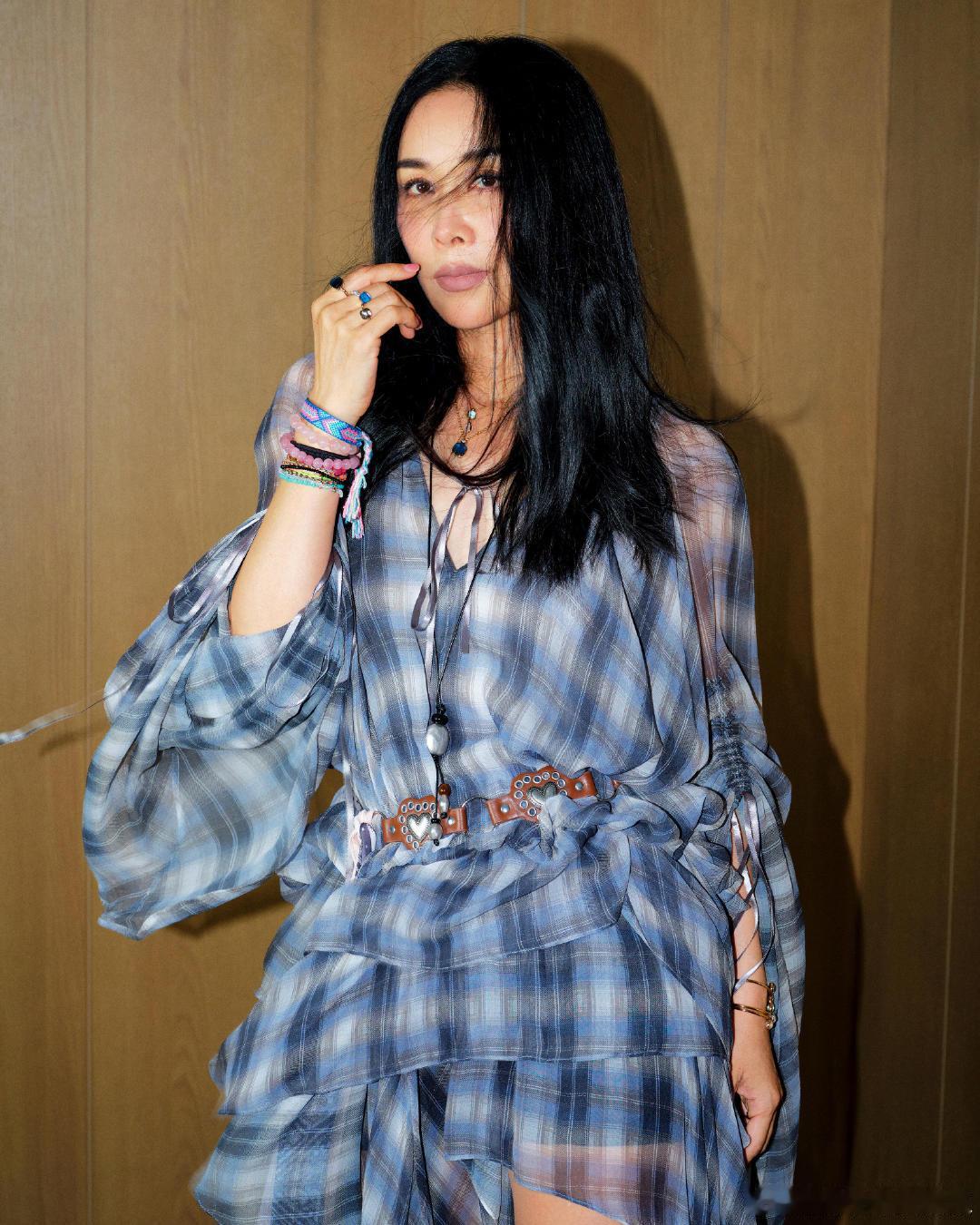 她以前是演员,和影帝梁朝伟同框,舒淇都穿那么多,她穿那么少,别人都穿冬衣,只有她