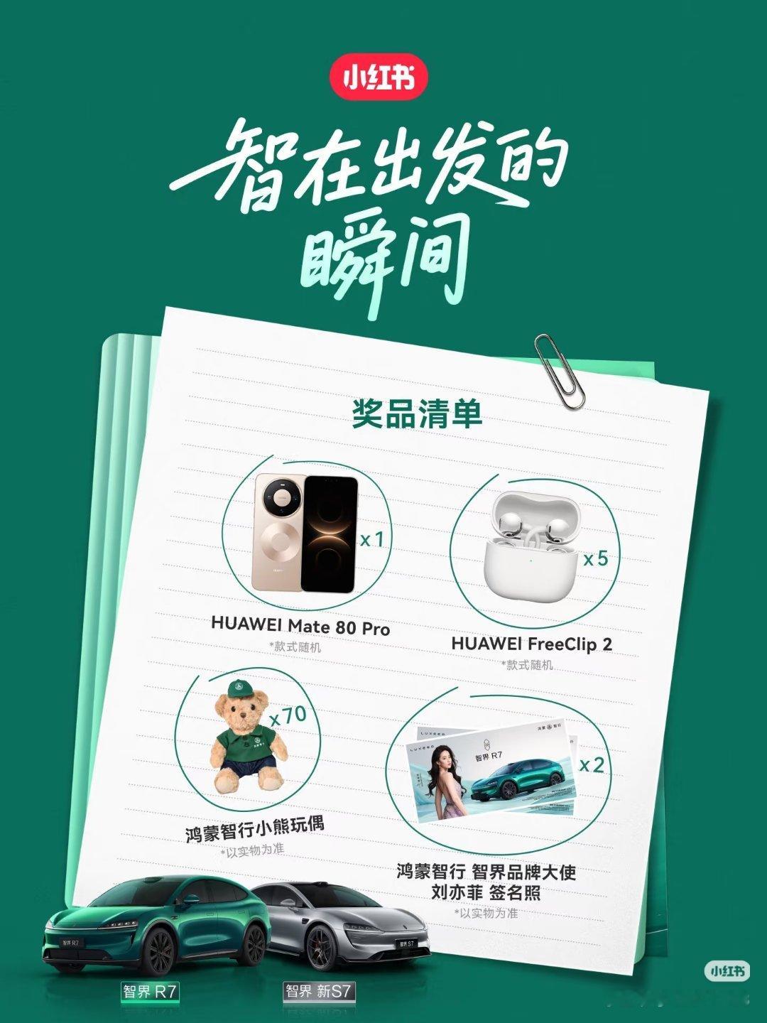 智界又搞事了。这次宠粉活动不仅有最新的mate80pro手机,还有刘亦菲签名照。这你受得了吗?智在出发的瞬间刘亦菲
