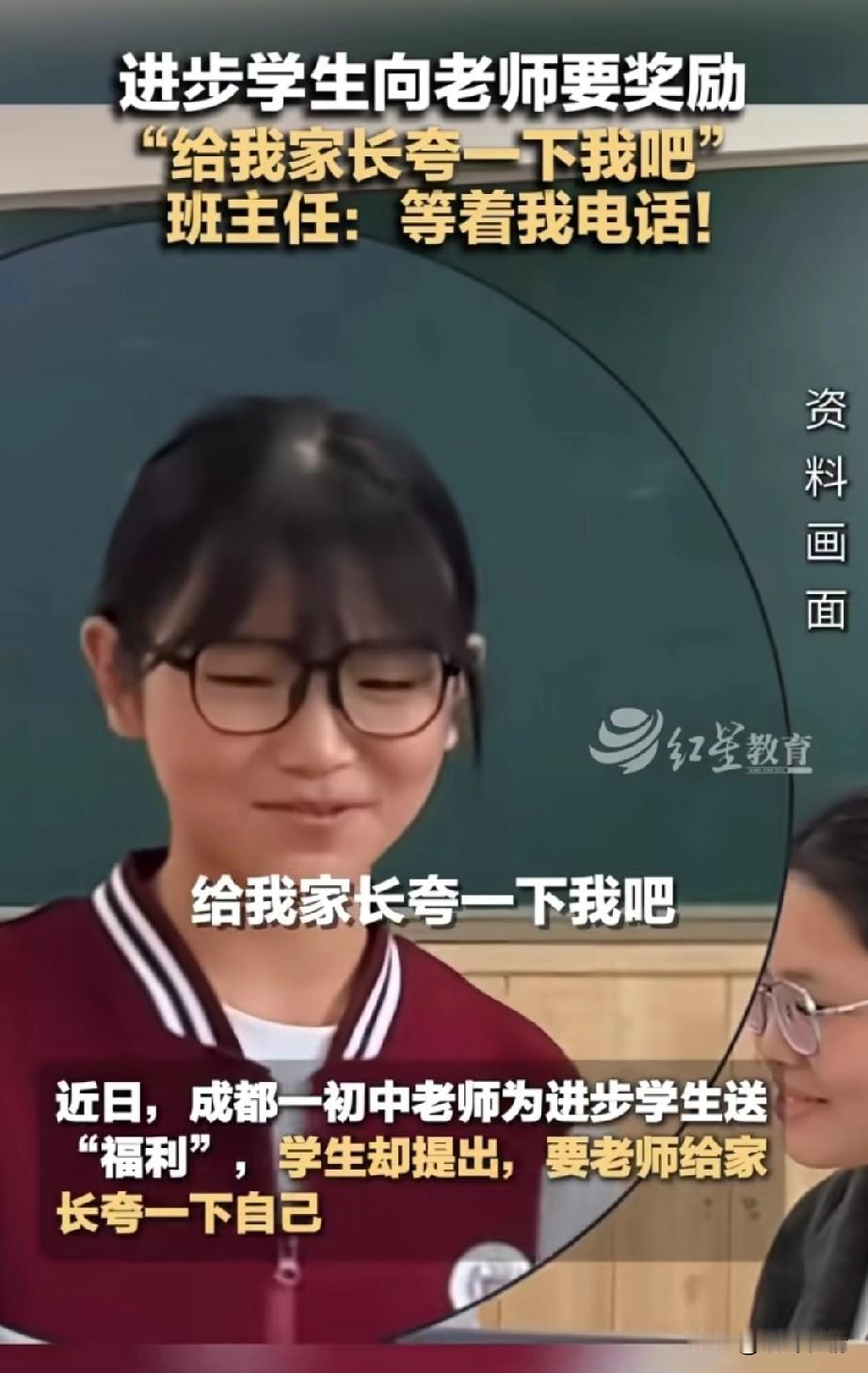 近日,成都某中学老师给进步学生送福利,女生表示给我家长夸一下我吧, 没想到老师直