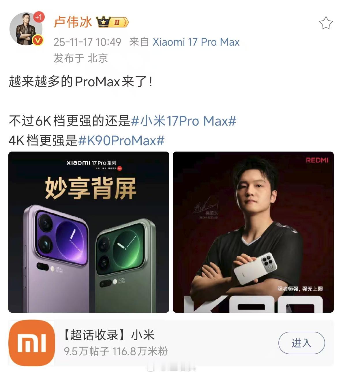 一加Ace6T也是Pro Max。想到了卢伟冰的那句,越来越多的Pro Max来了。无论你Pro不Pro,Max不Max,都可以叫Pro Max。因为接下来,Pro Max就是个名称,每款产品都可以用,每个人都可以用。因为华为Pro Max来了。华为虽然不是“Pro Max”的开创者,但一定是“Pro Max”的普及者。以后,请叫我“王石头Pro Max”。