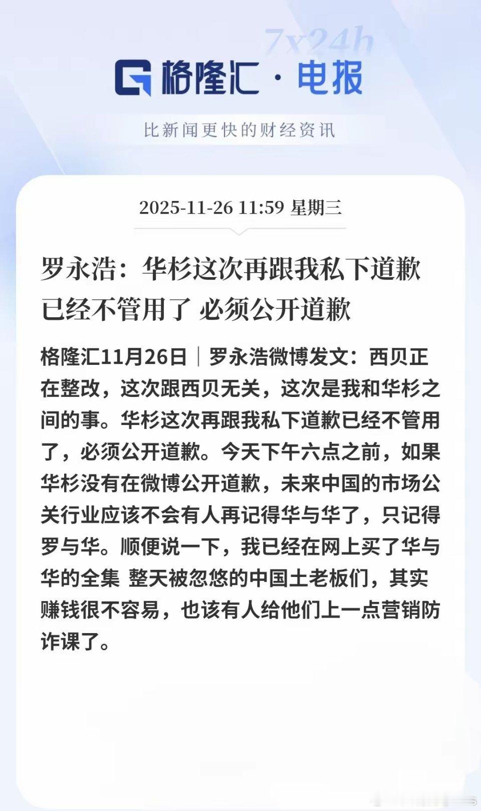 罗永浩在微博放话:华杉私下道歉没用,必须公开!(华杉是“华与华 ”营销咨询公司创始人)