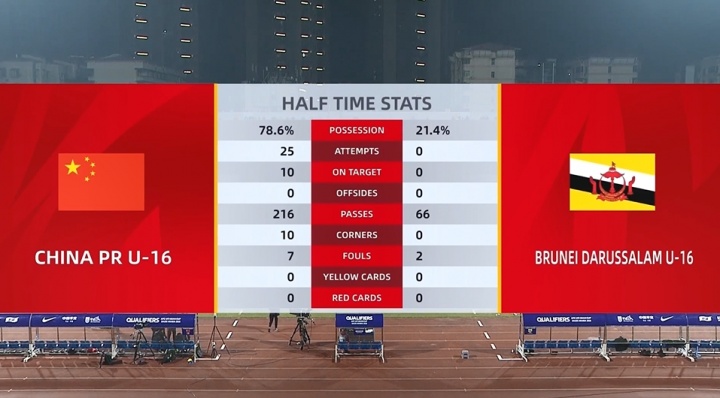 文莱开场时有一脚射门,估计全场也只有那一次了