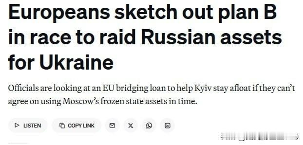 信用可能面临将破产,据《政客》报道,由于美国总统特朗普的干预,欧盟为了挪用了被冻结的俄罗斯资产”去援助乌克兰,准备采取“B计划”。 直白点说,就是以“被冻结的俄罗斯资产”做为抵押,为乌克兰政府申请贷款来援助乌克兰。 虽然名义上是为乌克兰重建,为乌克兰提供社会保障金,保障国防安全,但所有人都清楚,欧盟此举蓄意收回近三年向乌克兰提供的援助金,即便乌克兰偿还不起,也会欠下更多外债,欧盟将永远掌控乌克兰的未来命运与政治方向。继续利用乌克兰做前锋,遏制俄罗斯,继续为自己做炮灰。