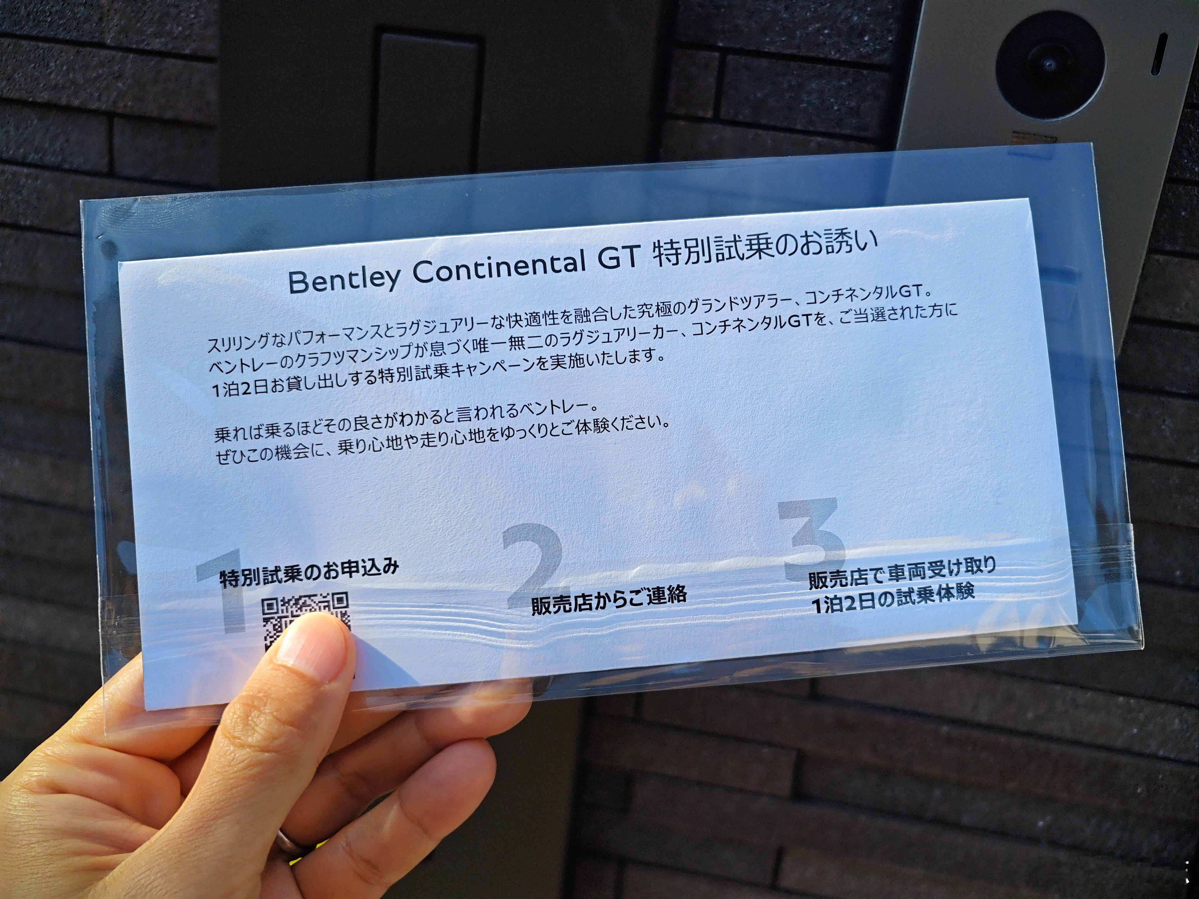 牌面了兄弟们,收到了来自宾利日本的试驾邀请(需要买车那种)