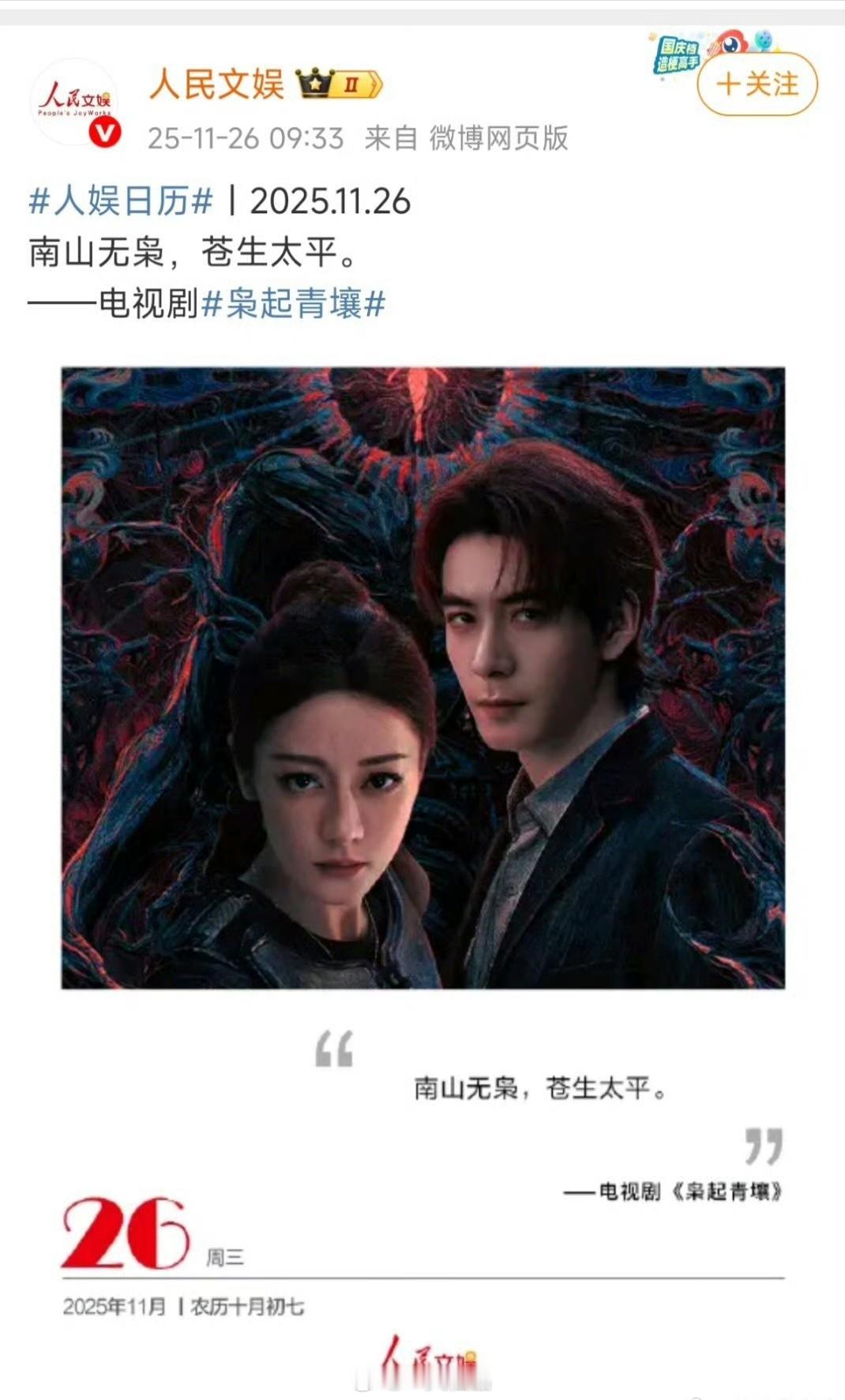 今日,人民文娱发了《枭起青壤》各官方大媒体全力支持,我当然要支持迪丽热巴枭起青壤