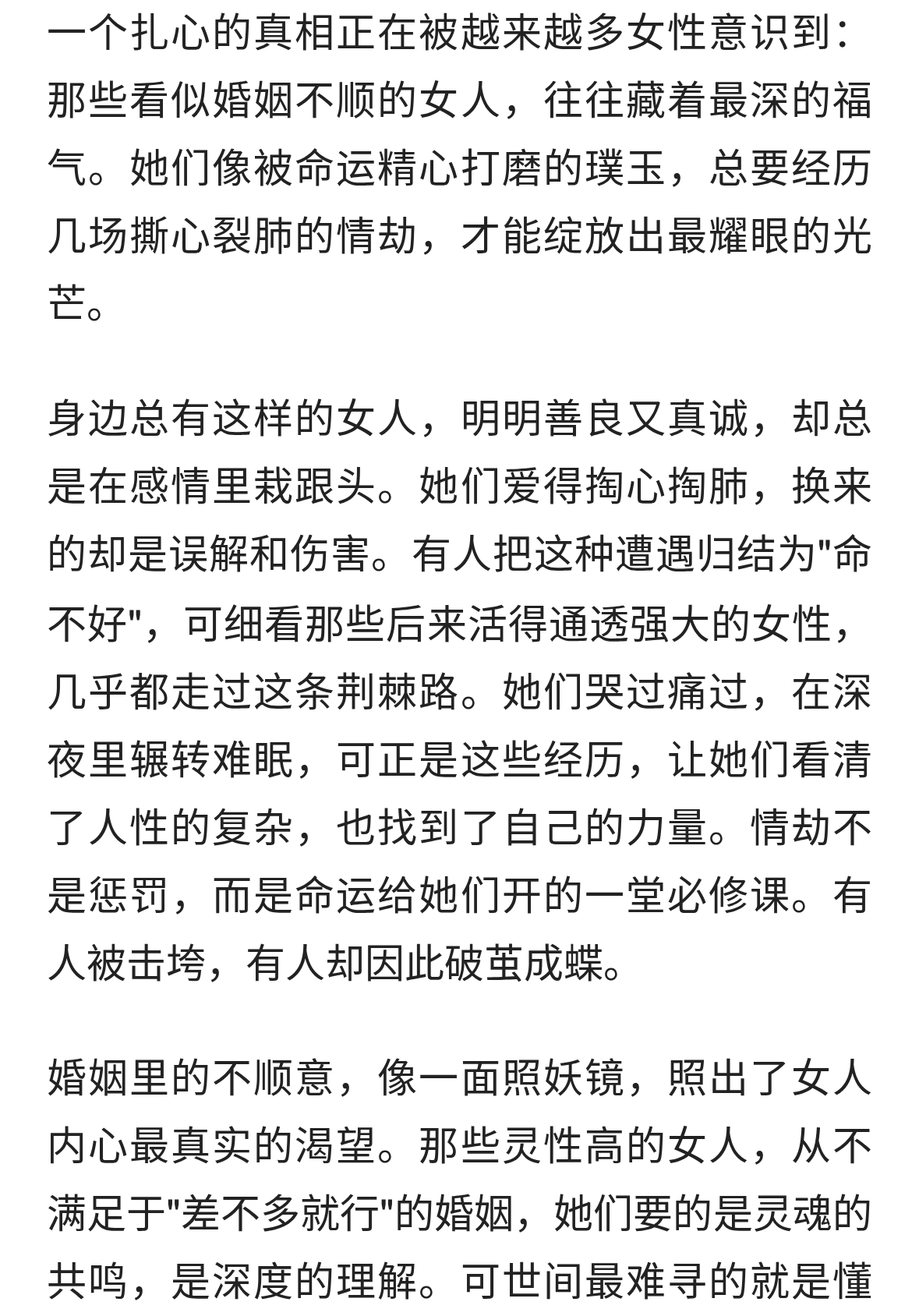 刷到刘震云那段话,突然就懂了。 什么叫“大福气的女人,婚姻多半不顺”?...