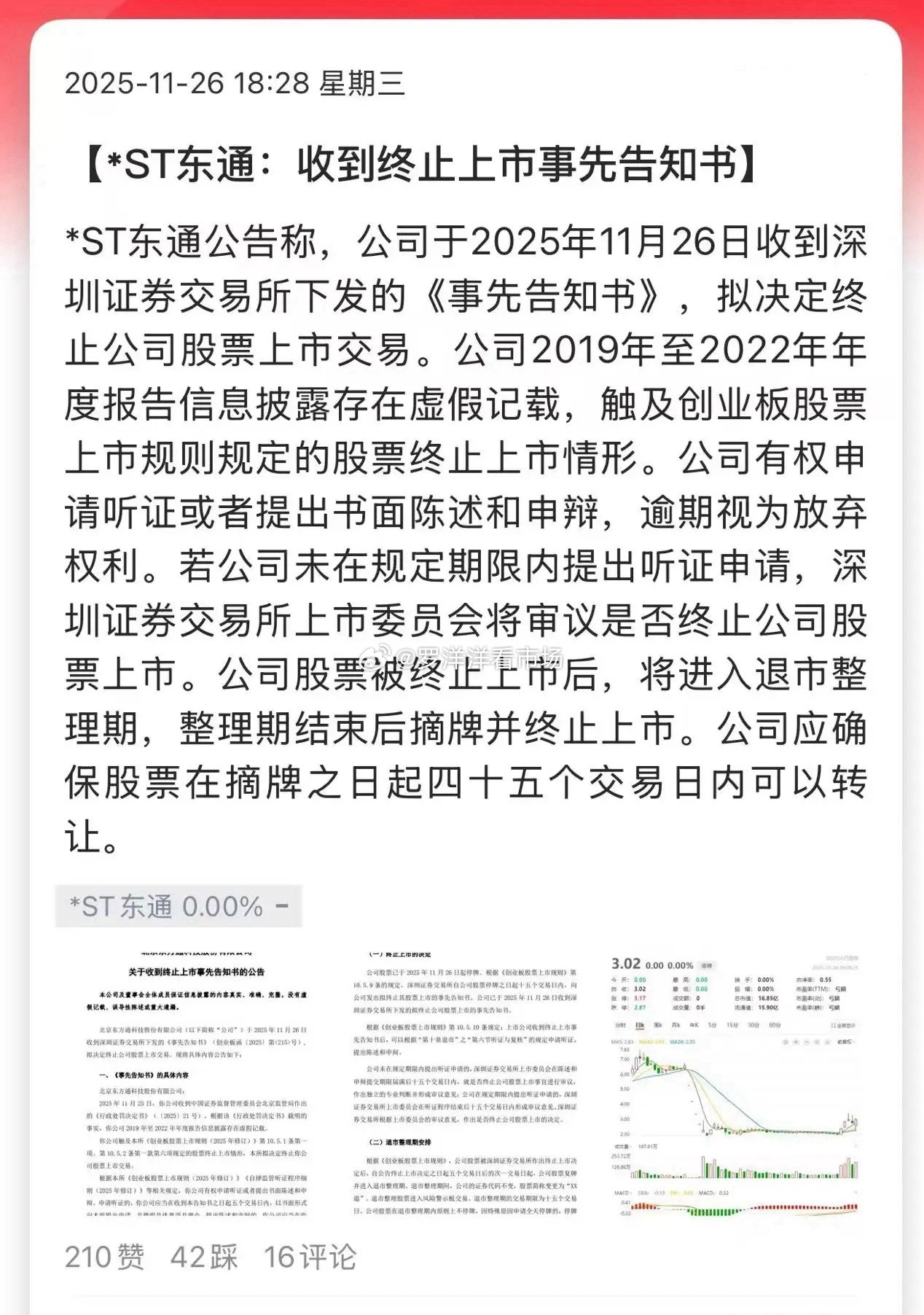 昨晚ST苏吴公告退市,今晚*ST东通公告退市,两家都是重大违法的!其中,ST苏吴