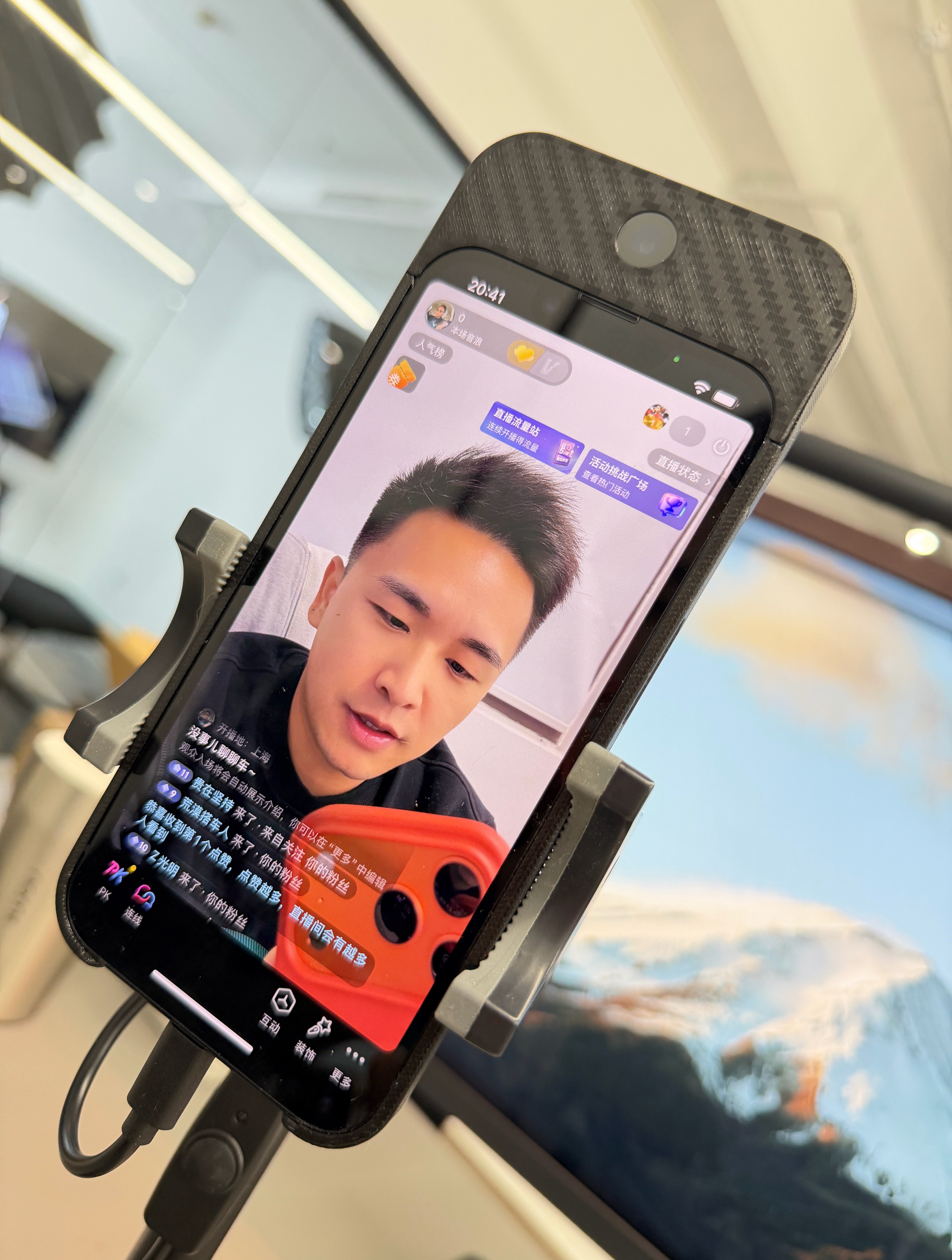 这个魔改的直播机真有点意思!美版 iPhone 16e 有锁版,diy魔改把后置摄像头改成前置的,可以更高清的直播,而且还支持镜像。所以好像是把后摄像头接前置接口了?目前这个前置摄像头不可用的。