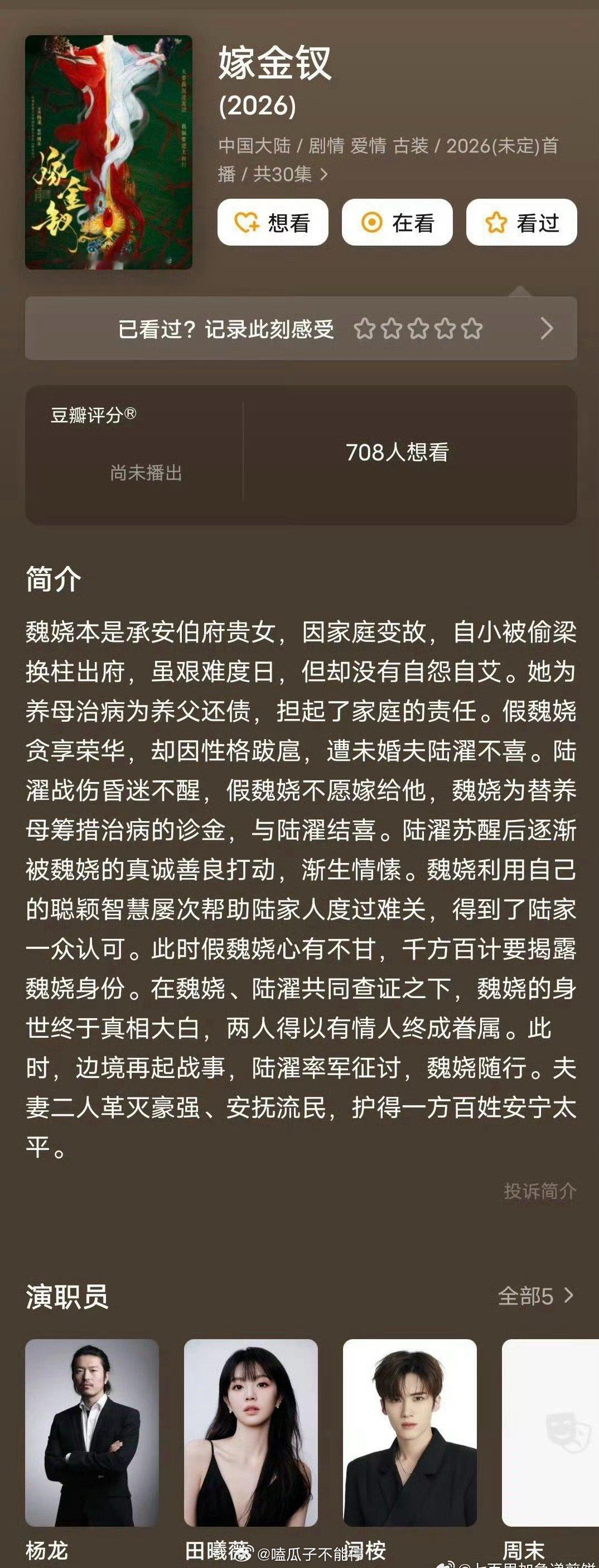 田曦薇《嫁金钗》明天单独官宣,单宣大女主+卡点生日,这绝对的扛剧大女主排面