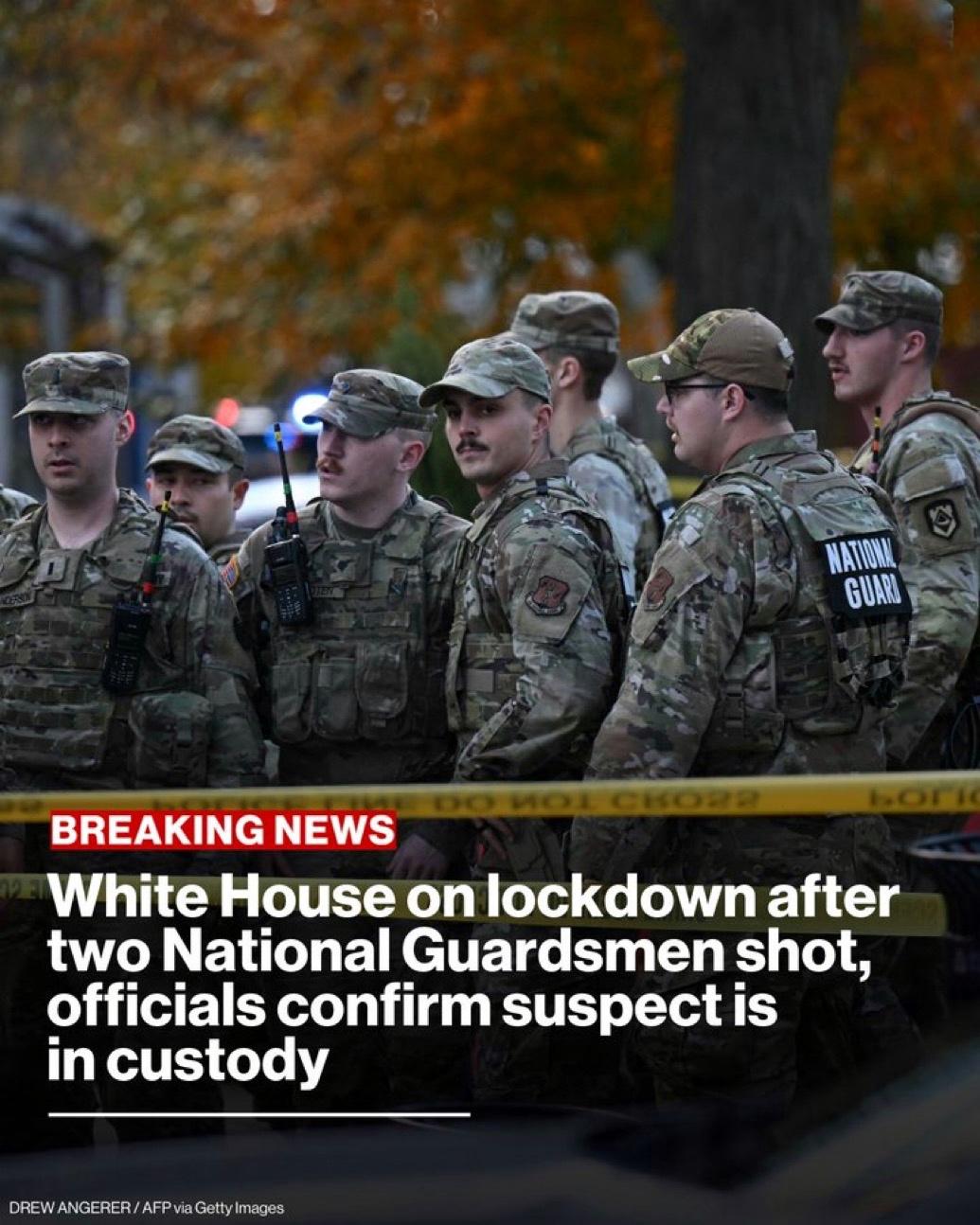 特朗普在社交媒体上发文称,在华盛顿特区市中心白宫附近枪击两名国民警卫队员的嫌犯“将付出非常沉重的代价”。 官员证实,在两名国民警卫队员在华盛顿特区市中心白宫附近遭枪击身亡后,白宫目前处于封锁状态。 特朗普总统目前在佛罗里达州,他将在位于佛罗里达州的海湖庄园俱乐部度过感恩节。